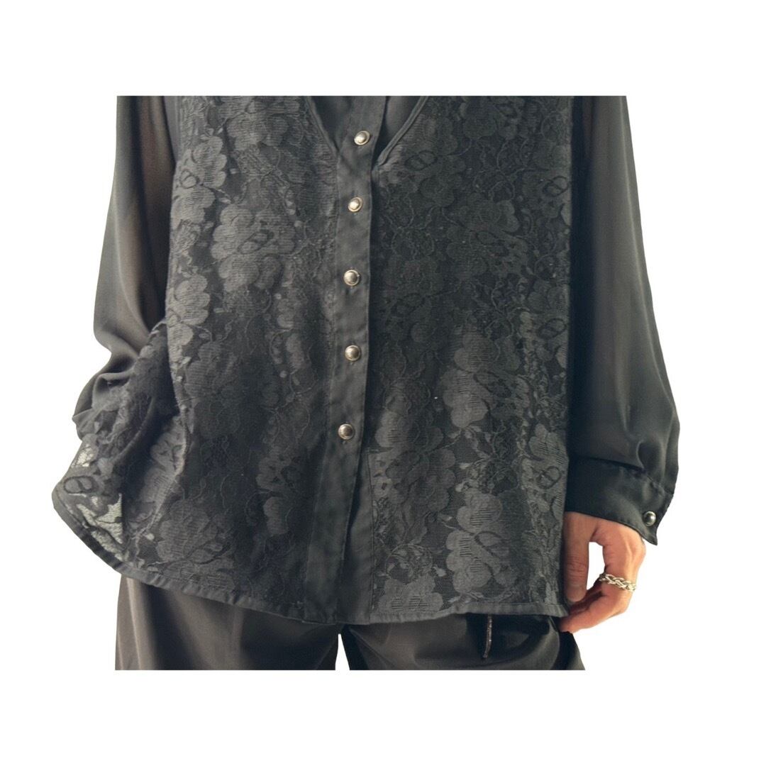 【Design used】Lace Gilet Docking Design sheer shirt