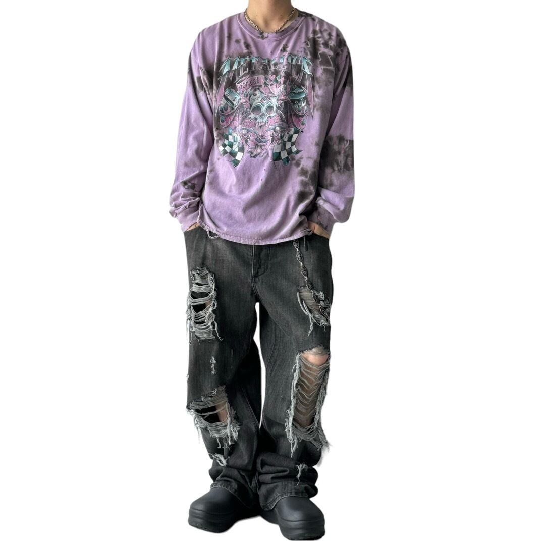 ♾METALLICA♾ skull motif crushed design long sleeve tee sizeXL