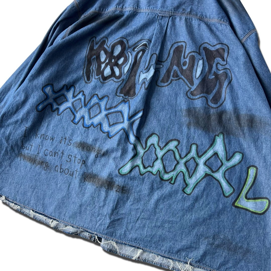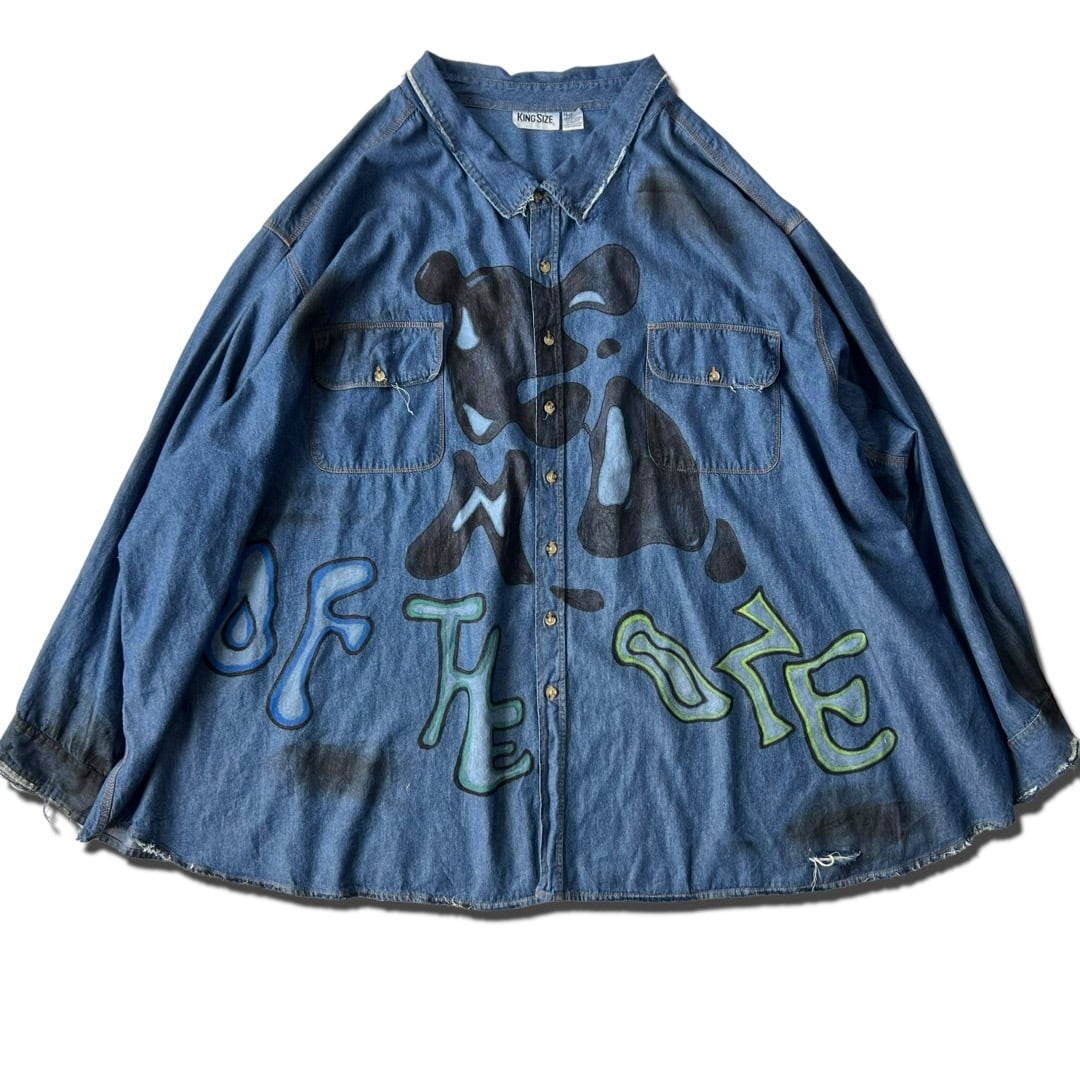 キングサイズ得意のケタ違いサイジングの中では珍しいデニムシャツ!!!! ペイントによるグラフィックが大判で描かれた最高にCOOLな1枚☝️✨