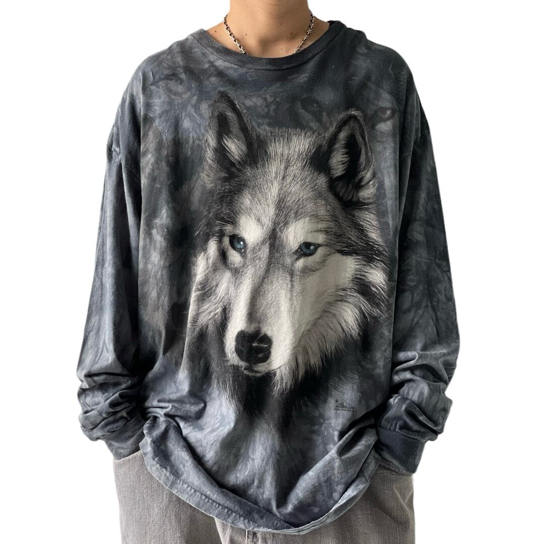 【THE MOUNTAIN】 ©️2002 Wolf art print tie-dye Longsleeve Tee / size:2XL