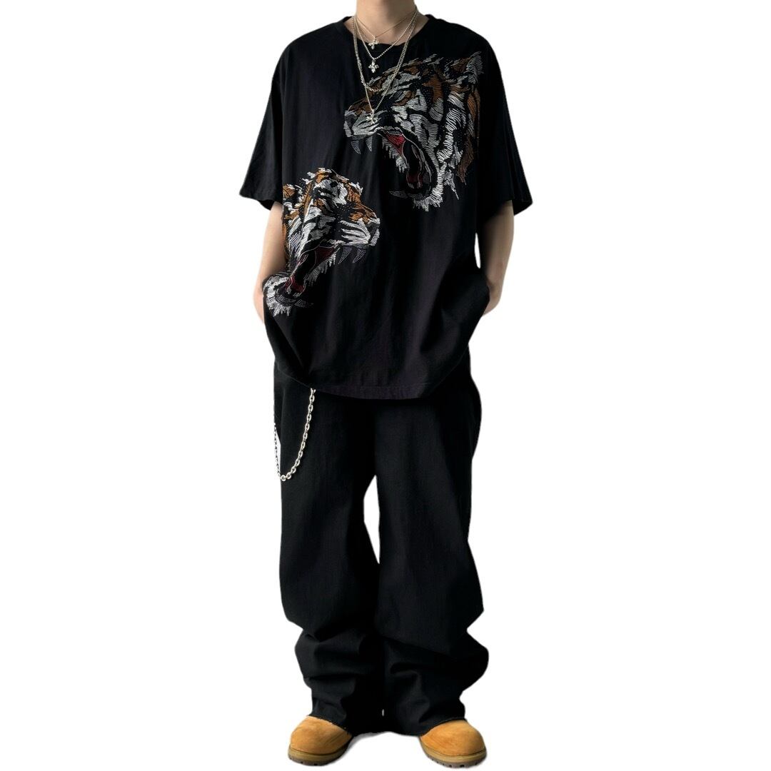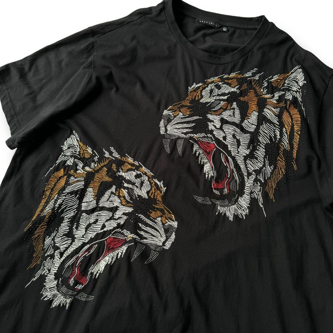 二匹の虎を刺繍とラインストーンで表現したデザインTee.