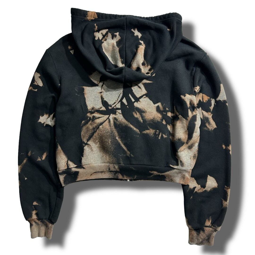 bleached design short length zip up hoodie