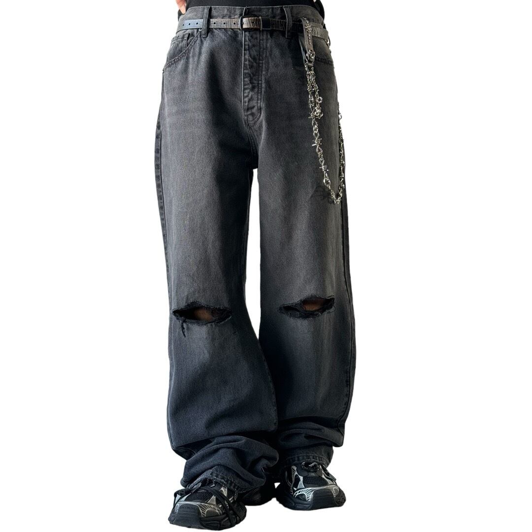 抜群のフェード感とグッドワイドバギーシルエットが満足なクラッシュデザインデニムパンツの入荷✨️