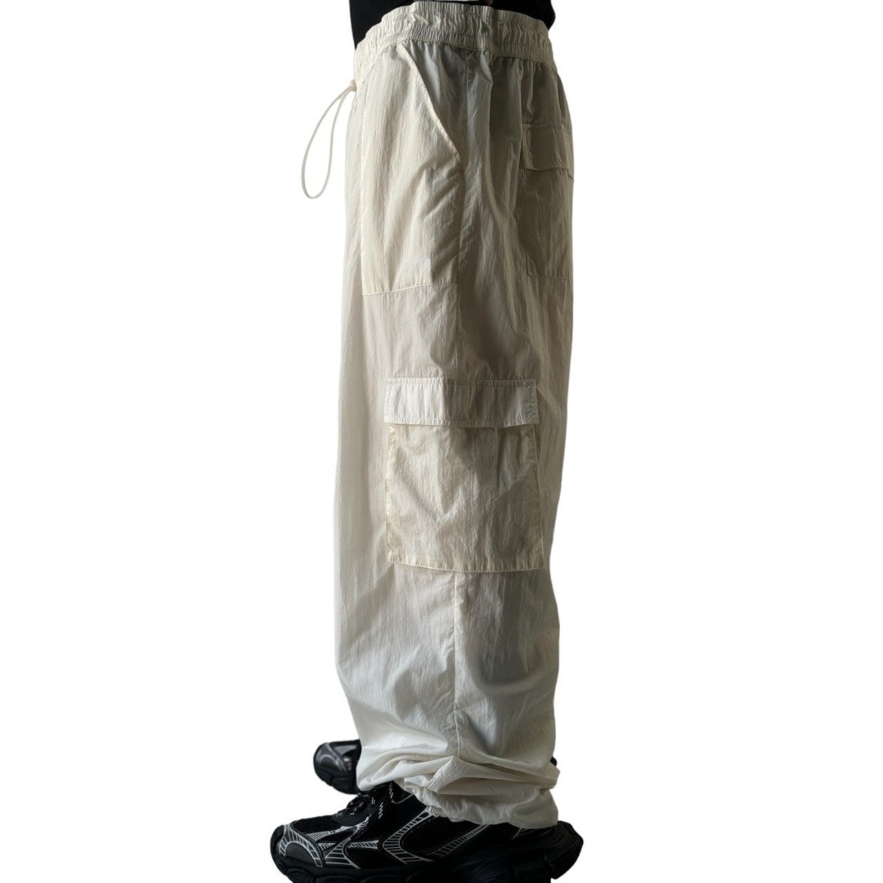 ダボッとワイドでナイロン素材のシャカシャカした素材感がラフにも履けて非常にスタイリングしやすい1本!!!