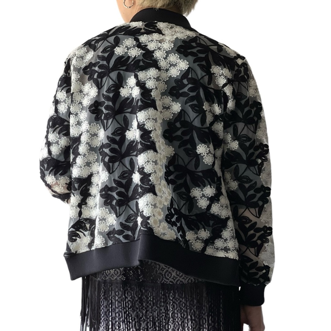 【belldini】Flower decoration design sheer mesh blouson