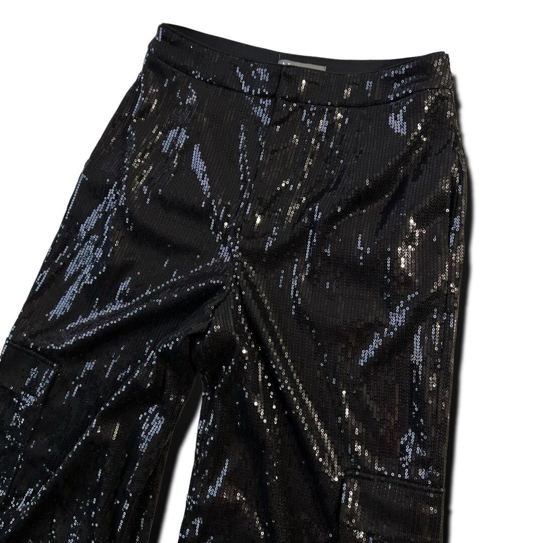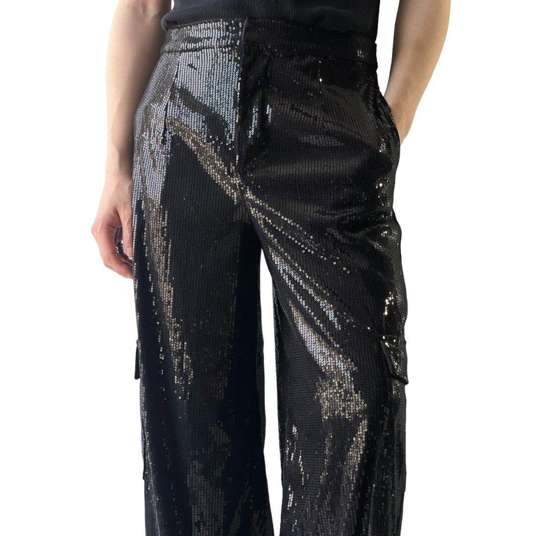 全面ブラックスパンコール装飾の漆黒おしゃれパンツ‼︎‼︎ カーゴパンツのようなポケットディテールのつくお洒落デザイン☺️✨