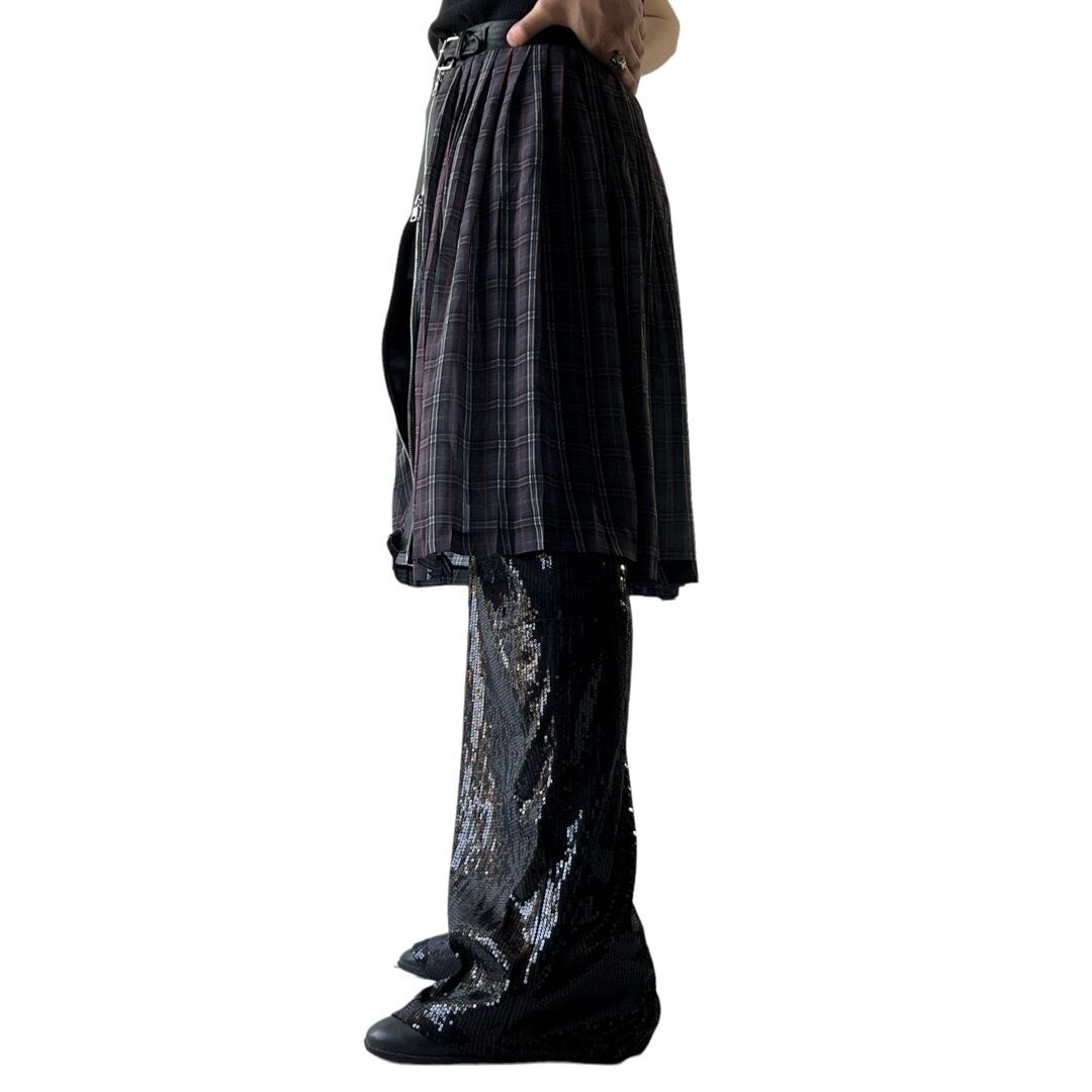【CALVIN RUCKER】Leather Combination Check pattern Design skirt / MADE IN U.S.A.