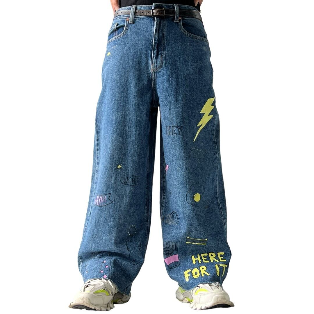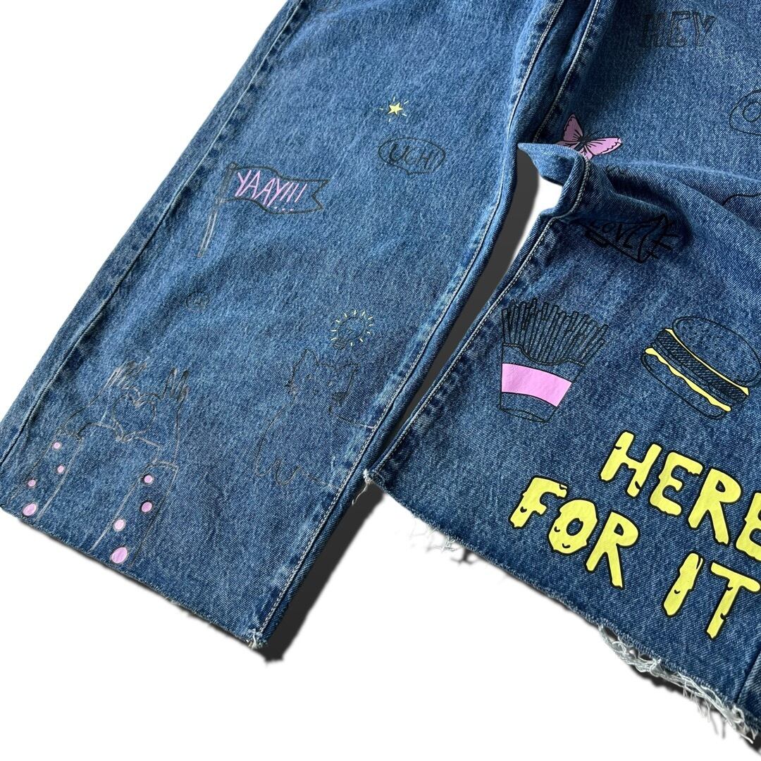 【wild fable】"HIGHEST WIDE LEG" Memorial print design buggy denim pants