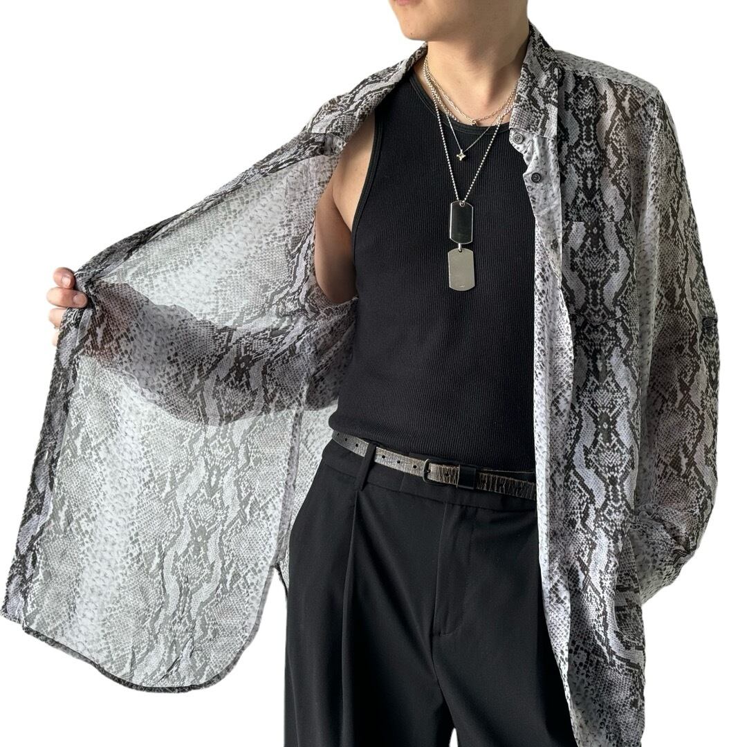 ♾️MODA INTERNATIONAL♾️ Python pattern sheer shirt