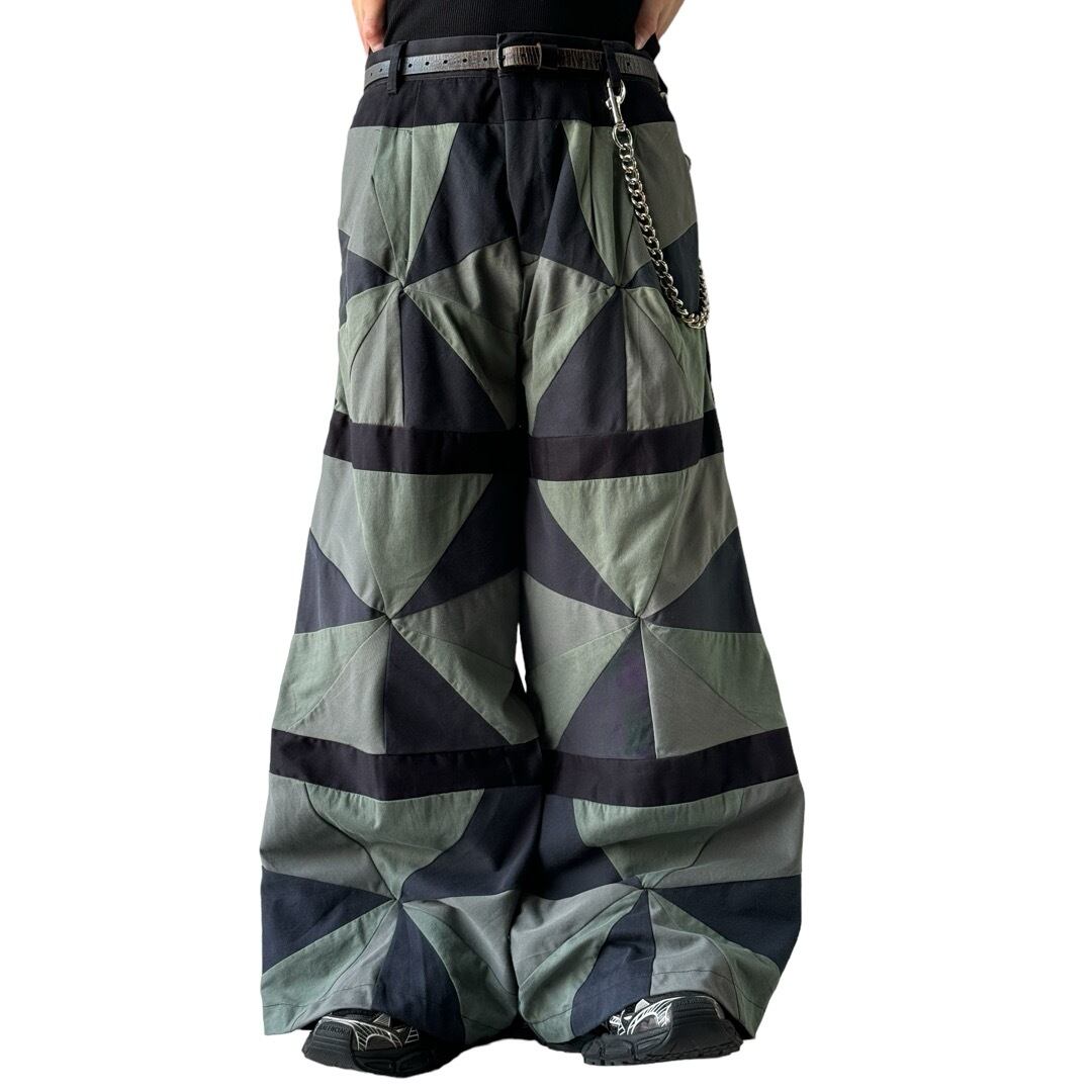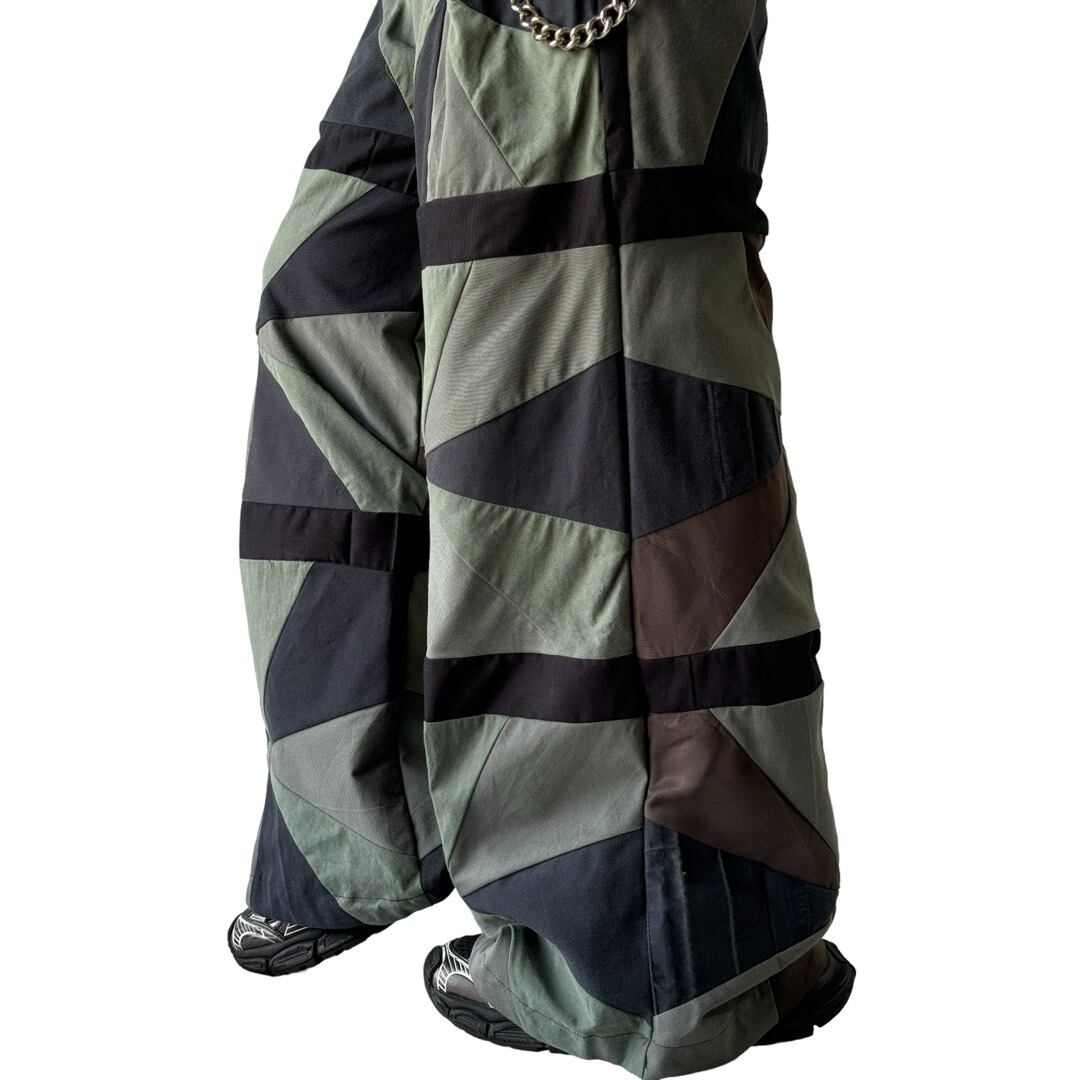 元々コットンチノパンを解体し切子細工の様なパネルパターンをデザイン