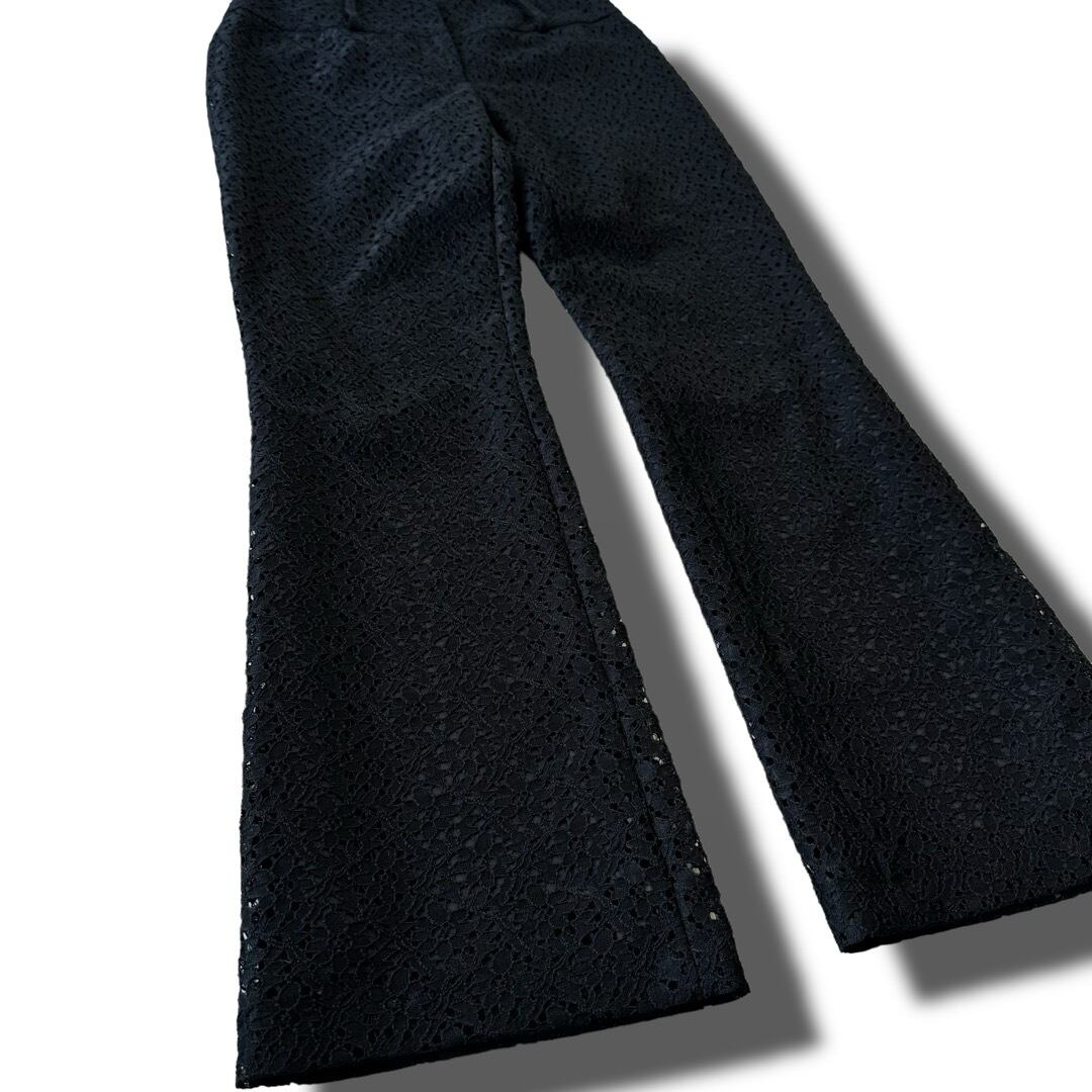 フラワーモチーフの透け感あるレースでメッシュ地、そしてフレアシルエットのスペシャルなパンツ✨