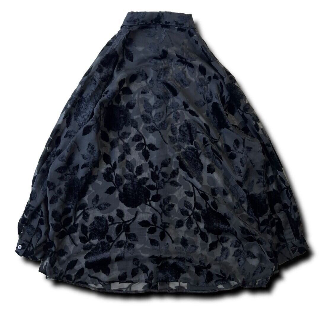 【LANE BRYANT】Velours Flower pattern Sheer See-through Design shirt