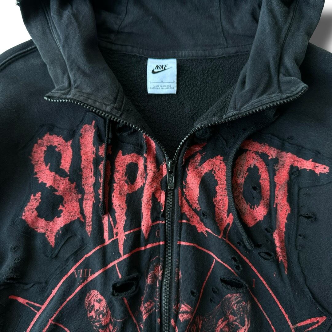 贅沢にNIKEのボディを使用し、SlipKnoTの両面プリント全体にダメージ加工を施したインパクト抜群なデザイン◎