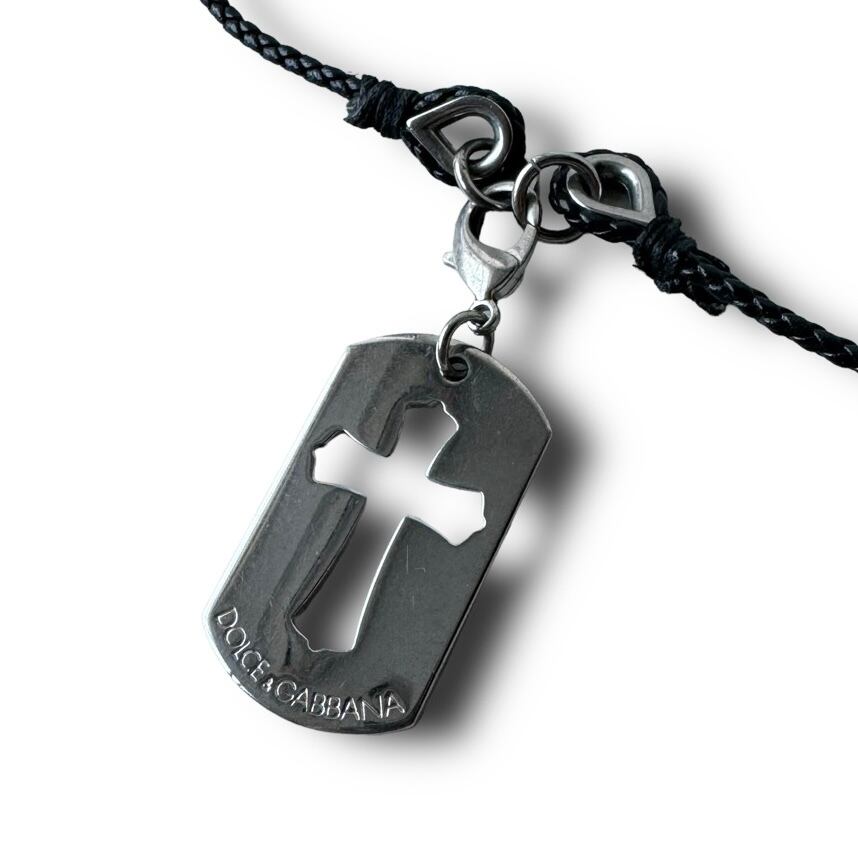 ♾️DOLCE&GABBANA♾️ Cross tag charm leather necklace MADE IN ITALY