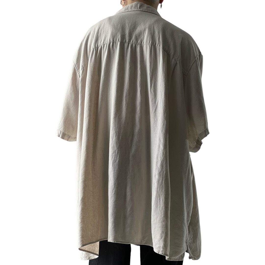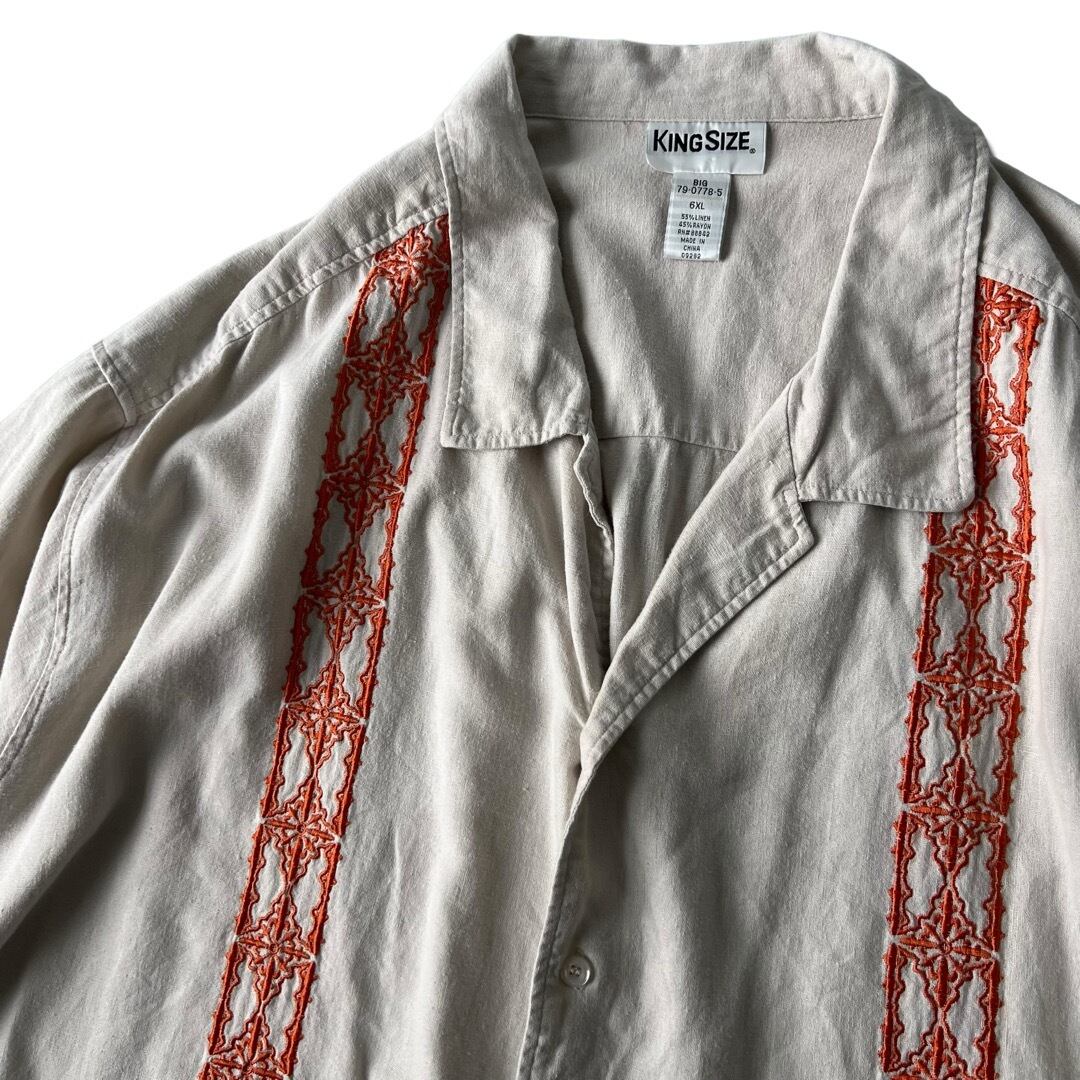 【KINGSIZE】Linen Rayon Embroidery Cuba shirt / 6XL BIG