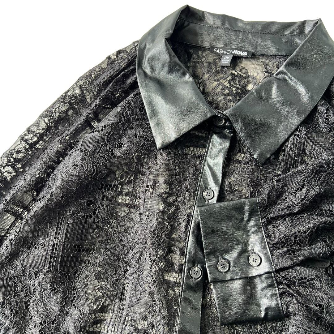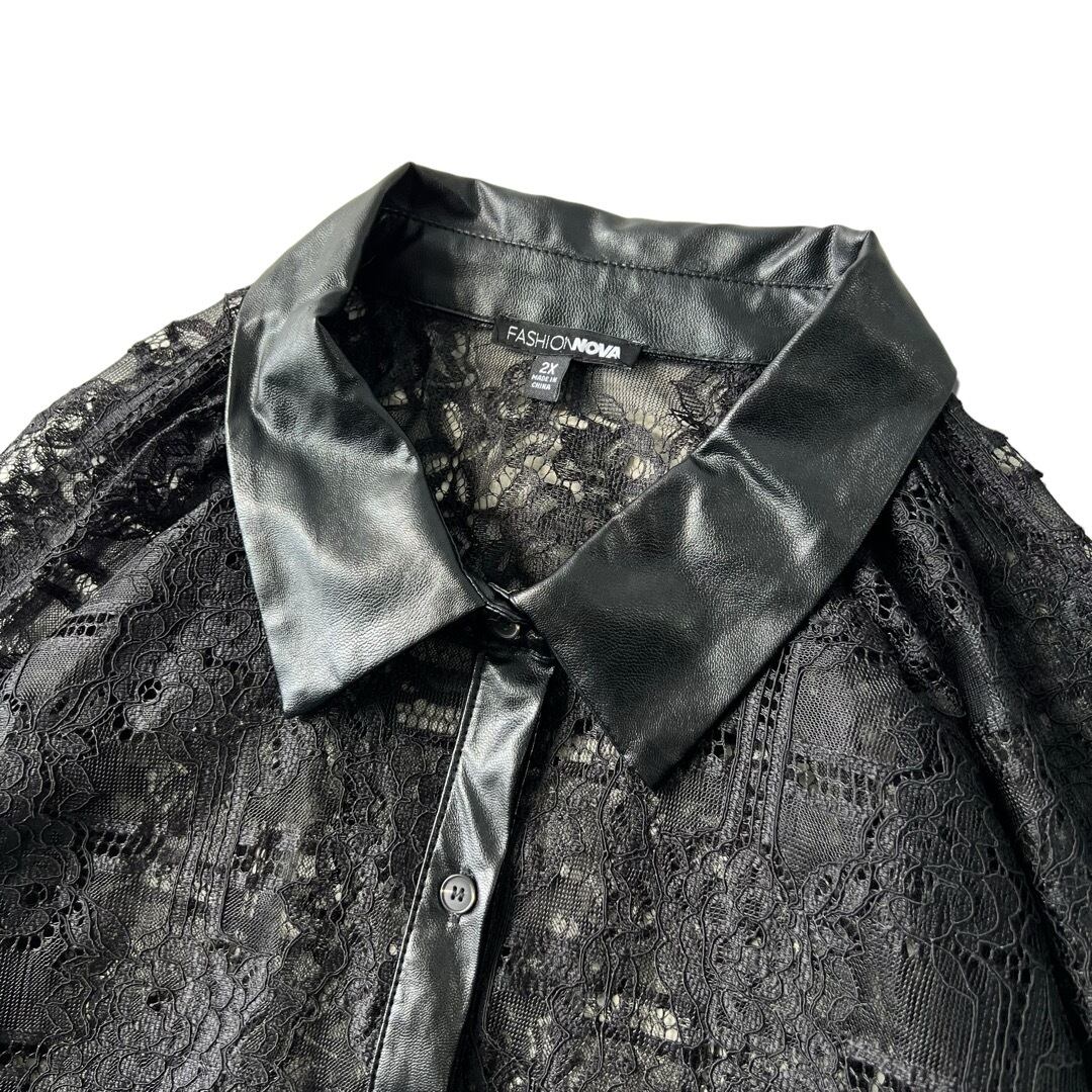 【FASHION NOVA】Point swiching Lace design sheer shirt