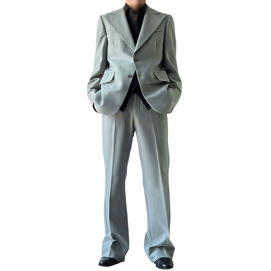 まさかのウエスタンディテールのセットアップでパンツはセミフレアスラックス❗️ジャケットの剣先だったラペルなんてもうかっこよすぎて…
