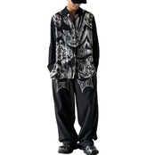 シックなモノクロにアクセントになったスパンコールがキラキラバエるタイガーモチーフのデザインシルクシャツ!