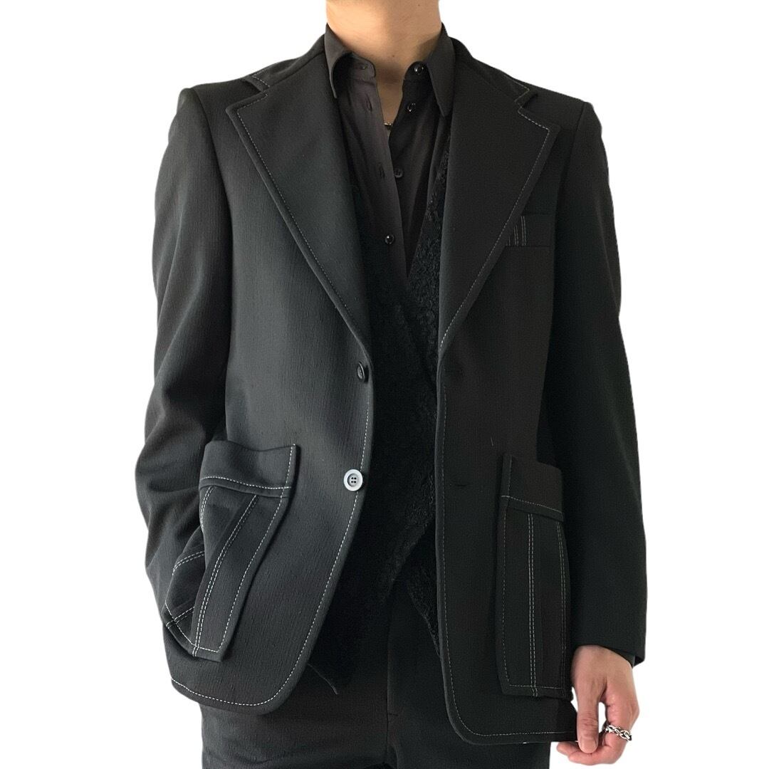 ジャケットにはステッチが盛り込まれた非常にレアな個体◎ パンツもセミフレアで細身でビシッとお洒落に決まりますよ⤴︎⤴︎
