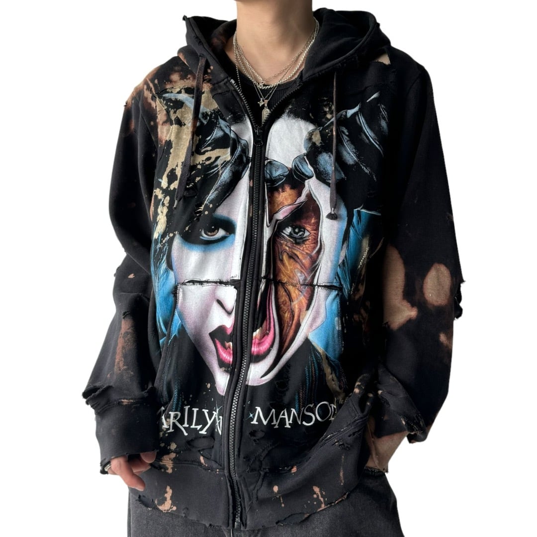 ♾ORIGINAL REMAKE♾ "MARILYN MANSON" Custom design zip hoodie size L
