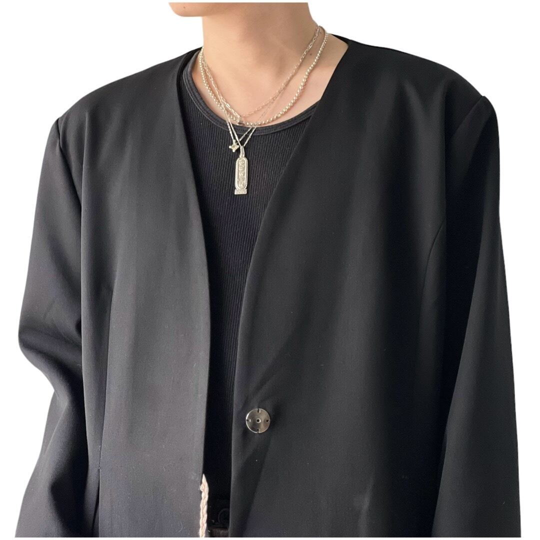 ジャケットの形もアシンメトリーになっていて左右の長さが違うのも面白くブランド顔負けの見栄え✨