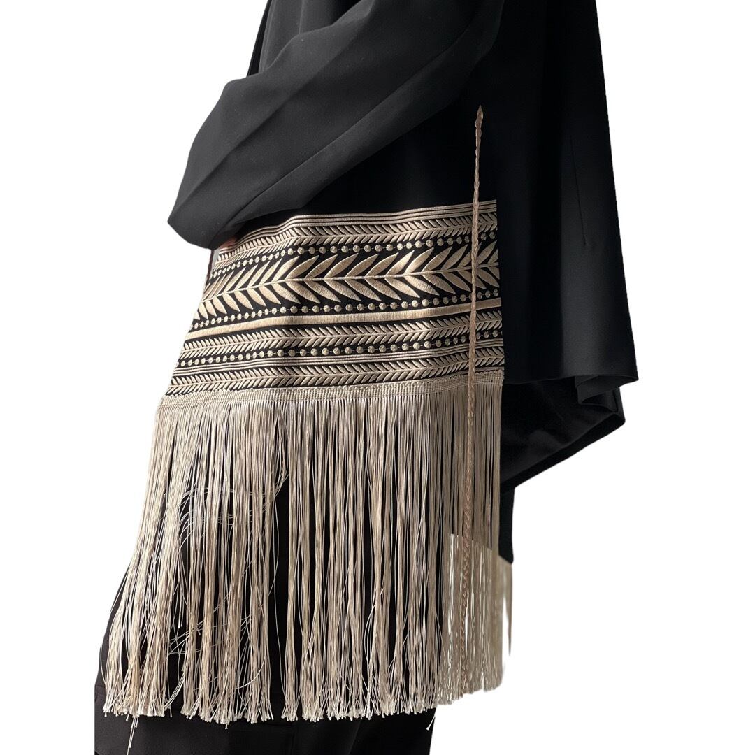 古着らしい独特なモチーフの刺繍とそれにマッチしたフリンジが美しく靡く着て動いた方がかっこいいデザイン◎