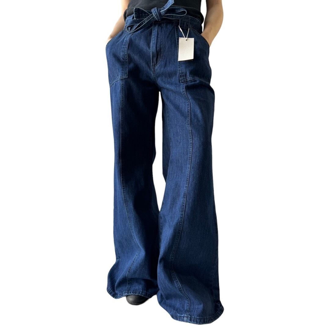 ウエスト同素材ベルト付き、裾フレアなワイドデニムパンツでめちゃくちゃお洒落☺️❤️