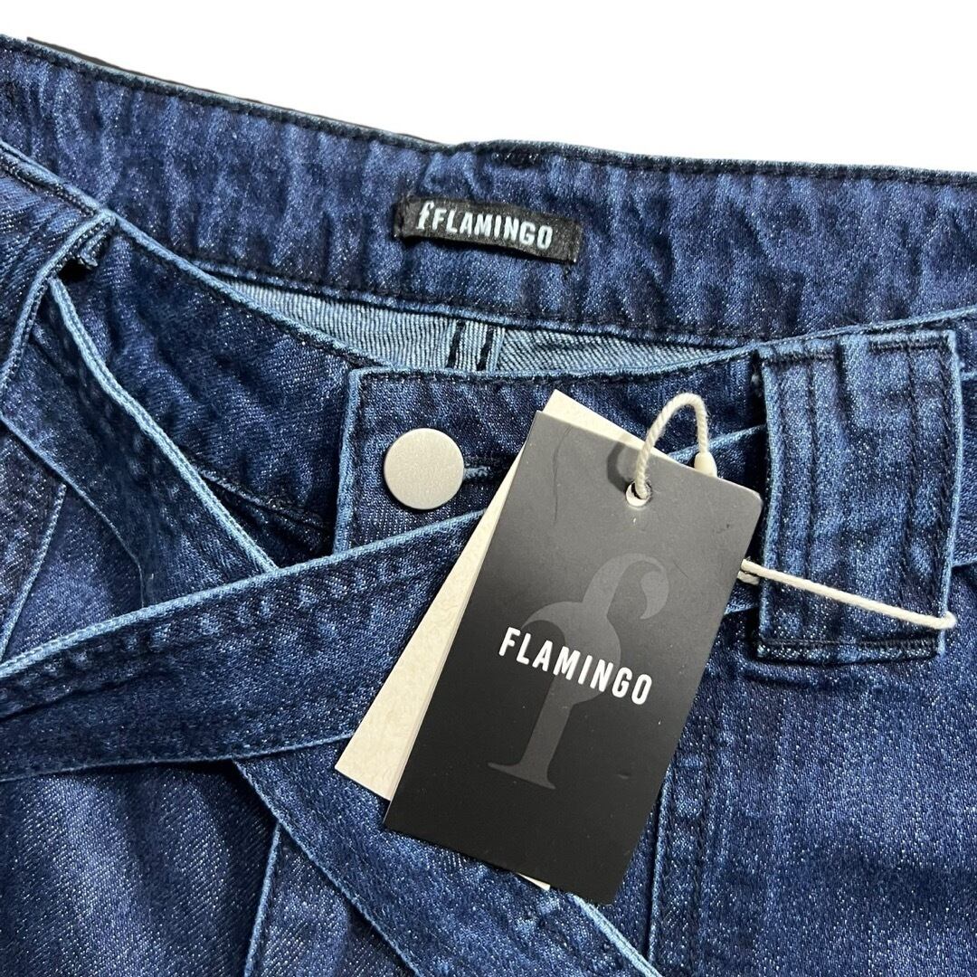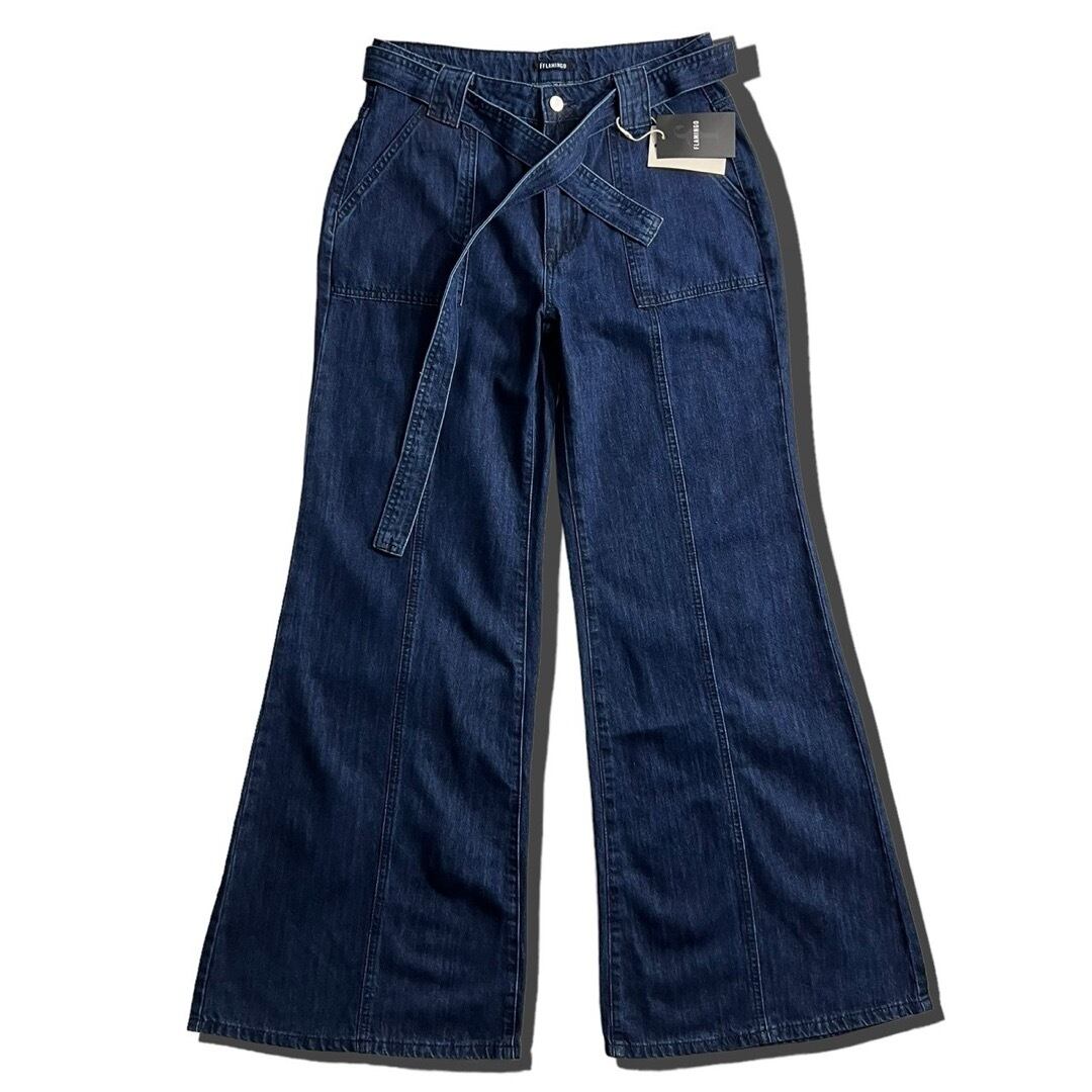 【FLAMINGO】Wide Flare Belted Denim Pants