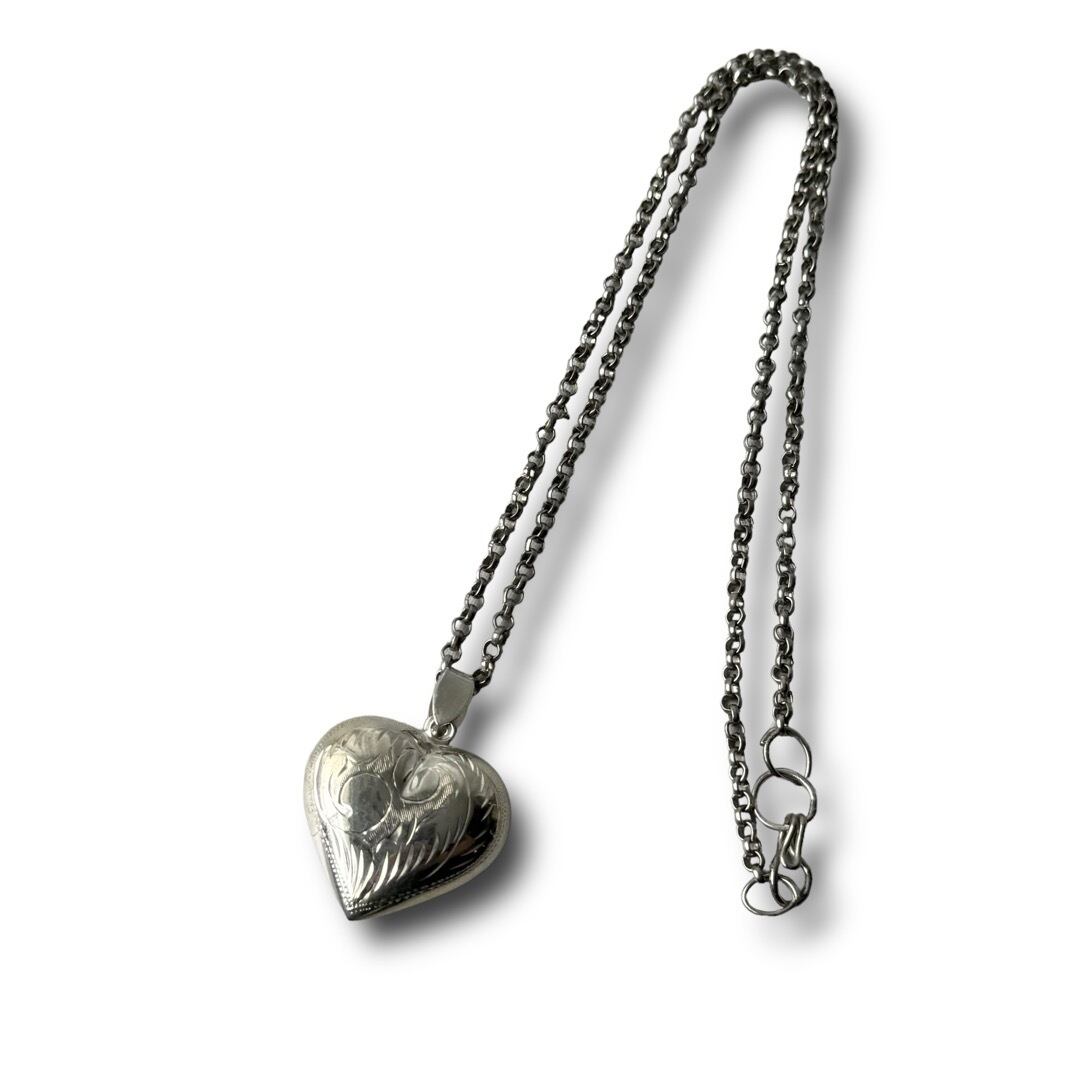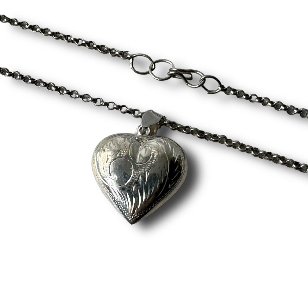 ♾vintage silver jewelry♾ heart motif relief design pendant top necklace sv925