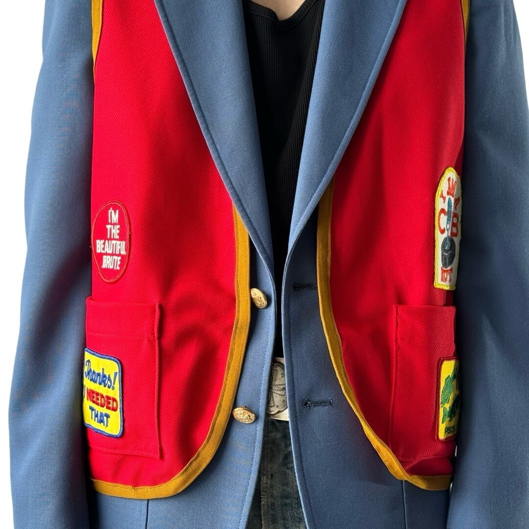 沢山のワッペンを貼り付け背面にはヘアブラシを駆使したかのようなアートセンス抜群の素敵なイラストが描かれた一点物感のある特別感がかなり素敵な1着!