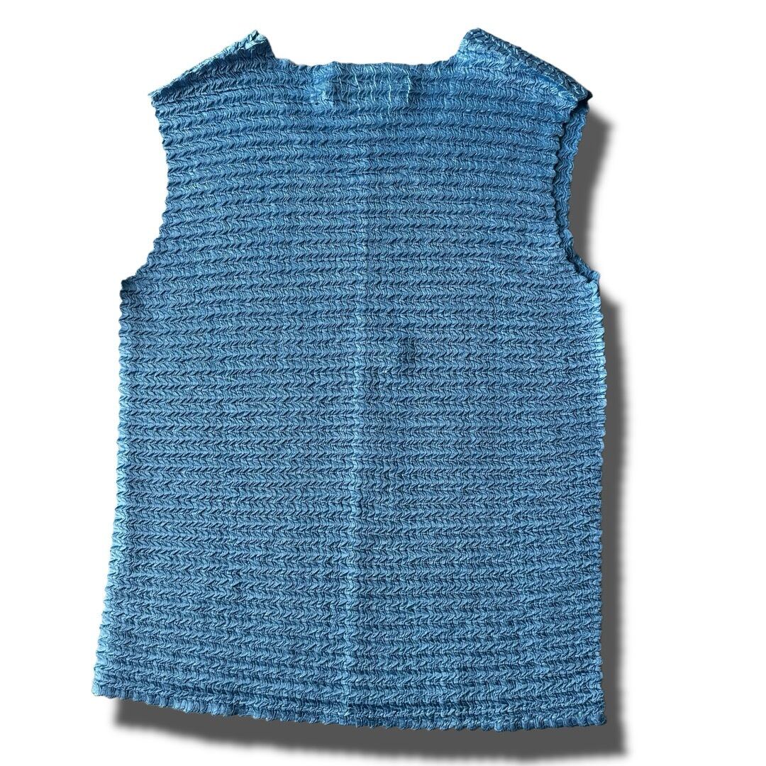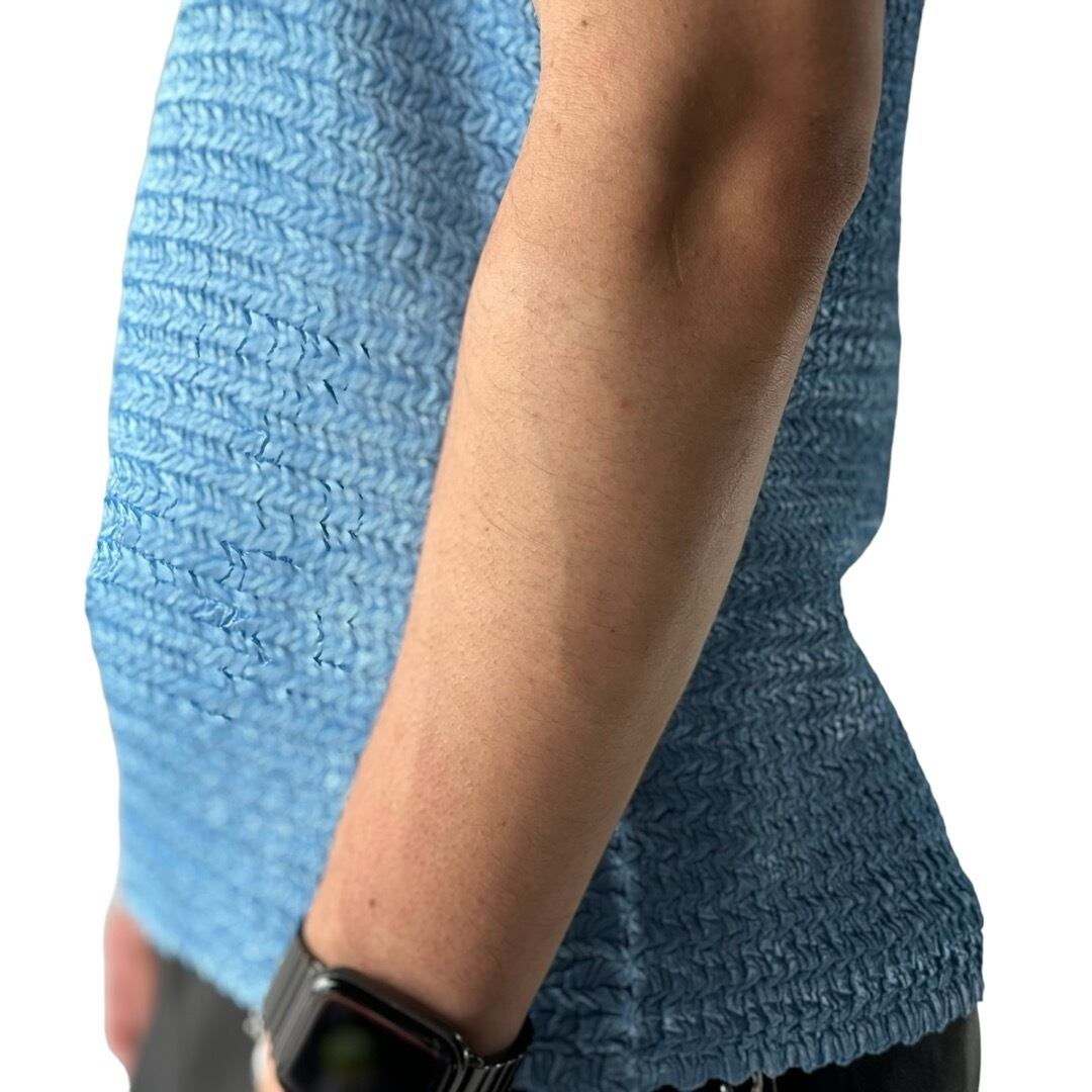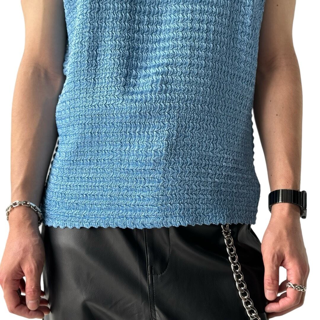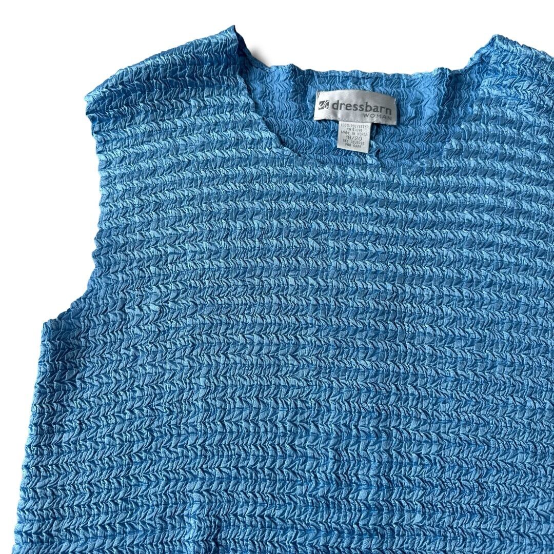 ブランドのようなシワ加工に夏らしい爽やかブルーが目を引くデザインスリーブレス!