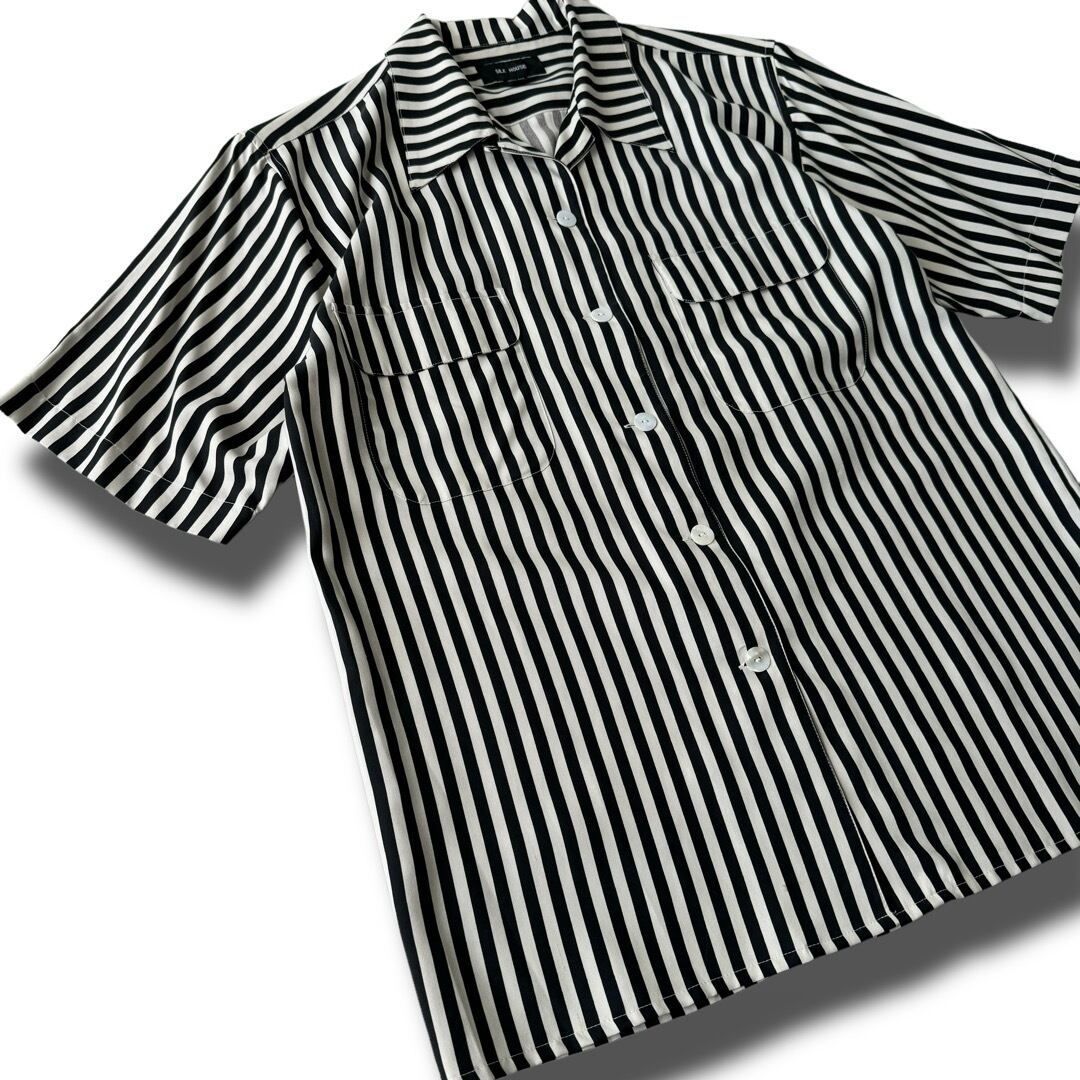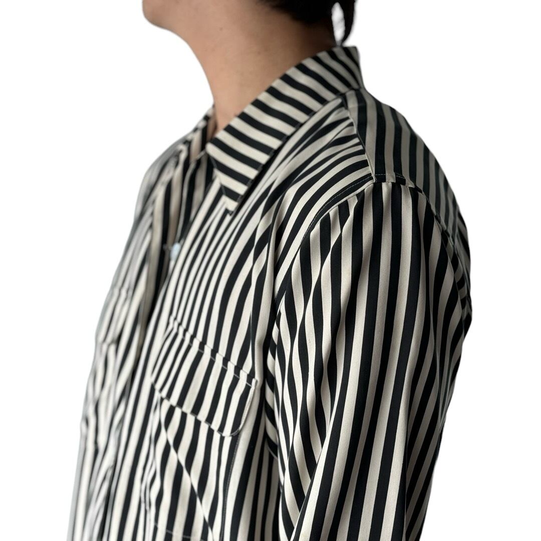 シックなモノクロの洗練感漂うストライプパターンが1枚羽織るだけでしっかり様になる主役シャツ!