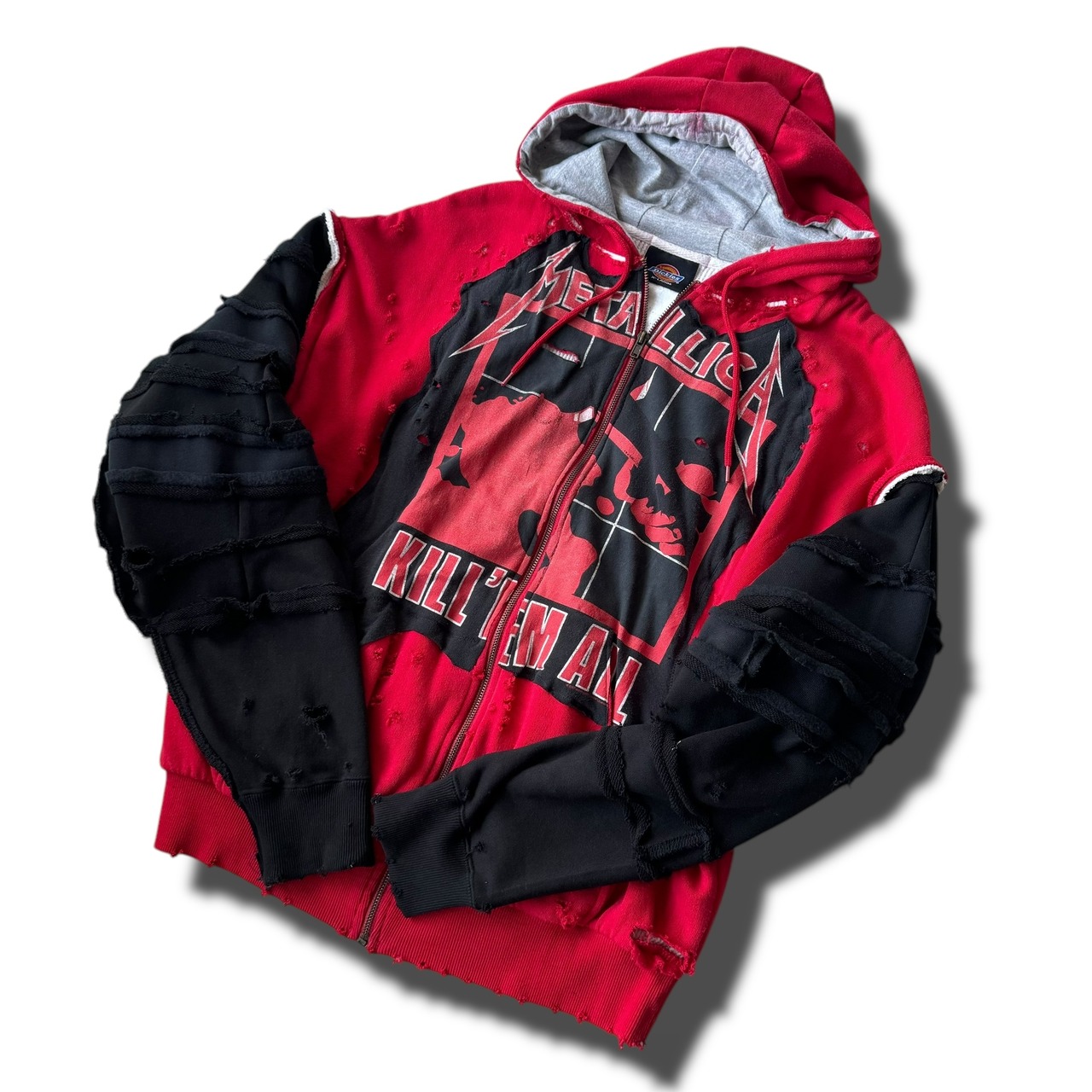 ♾ORIGINAL REMAKE♾ " METALLICA " design crushed zip up hoodie sizeX-LARGE