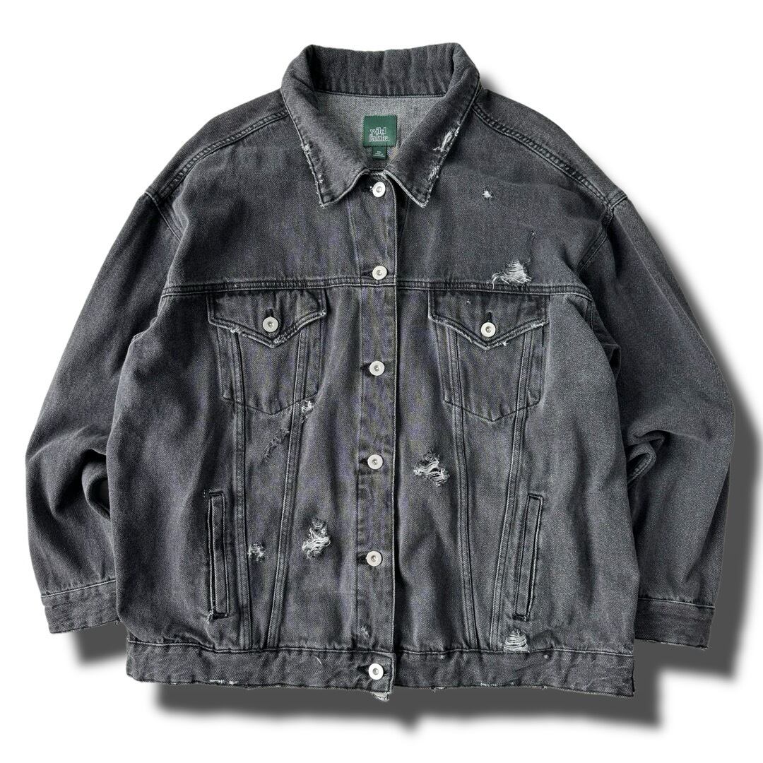 ♾wild fable♾ original remake design crushed black denim tracker jacket sizeXXL