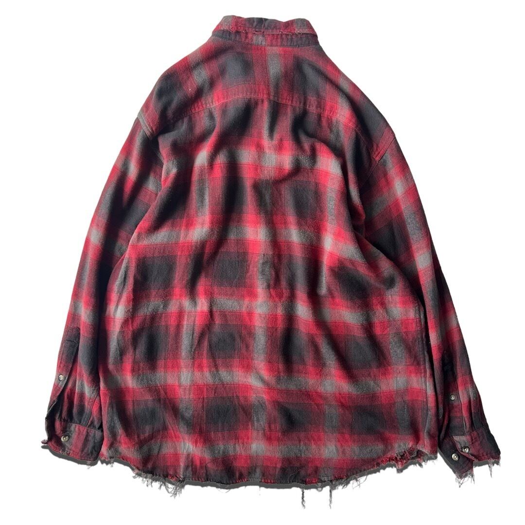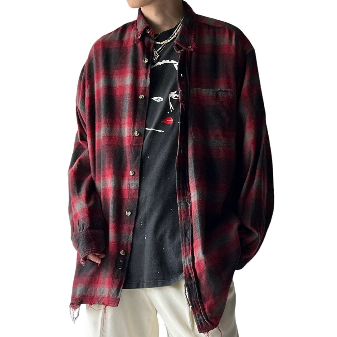 配色抜群によろしな赤黒グレーなシャドーチェックオンブレにダメージをオンしたスペシャルシャツ✨