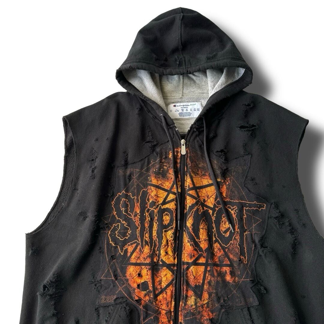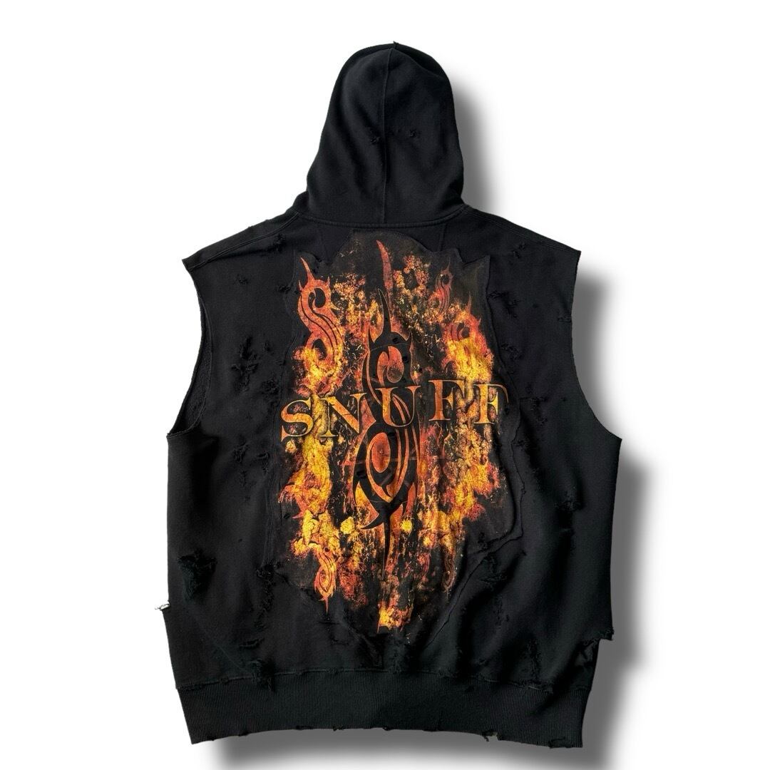 ♾ORIGINAL REMAKE♾ " SlipKnoT " design crushed sleeve less zip up hoodie sizeXL