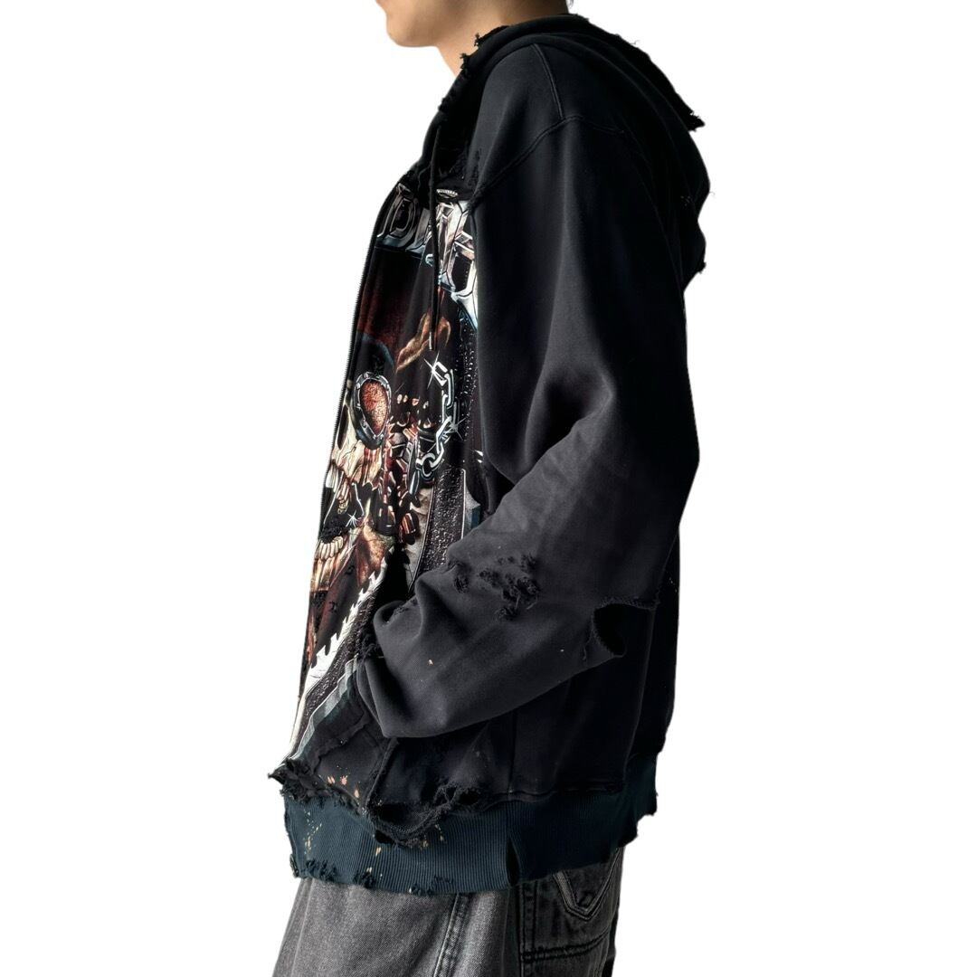 ♾ORIGINAL REMAKE♾ " MAGADETH " design crushed zip up hoodie sizeXL