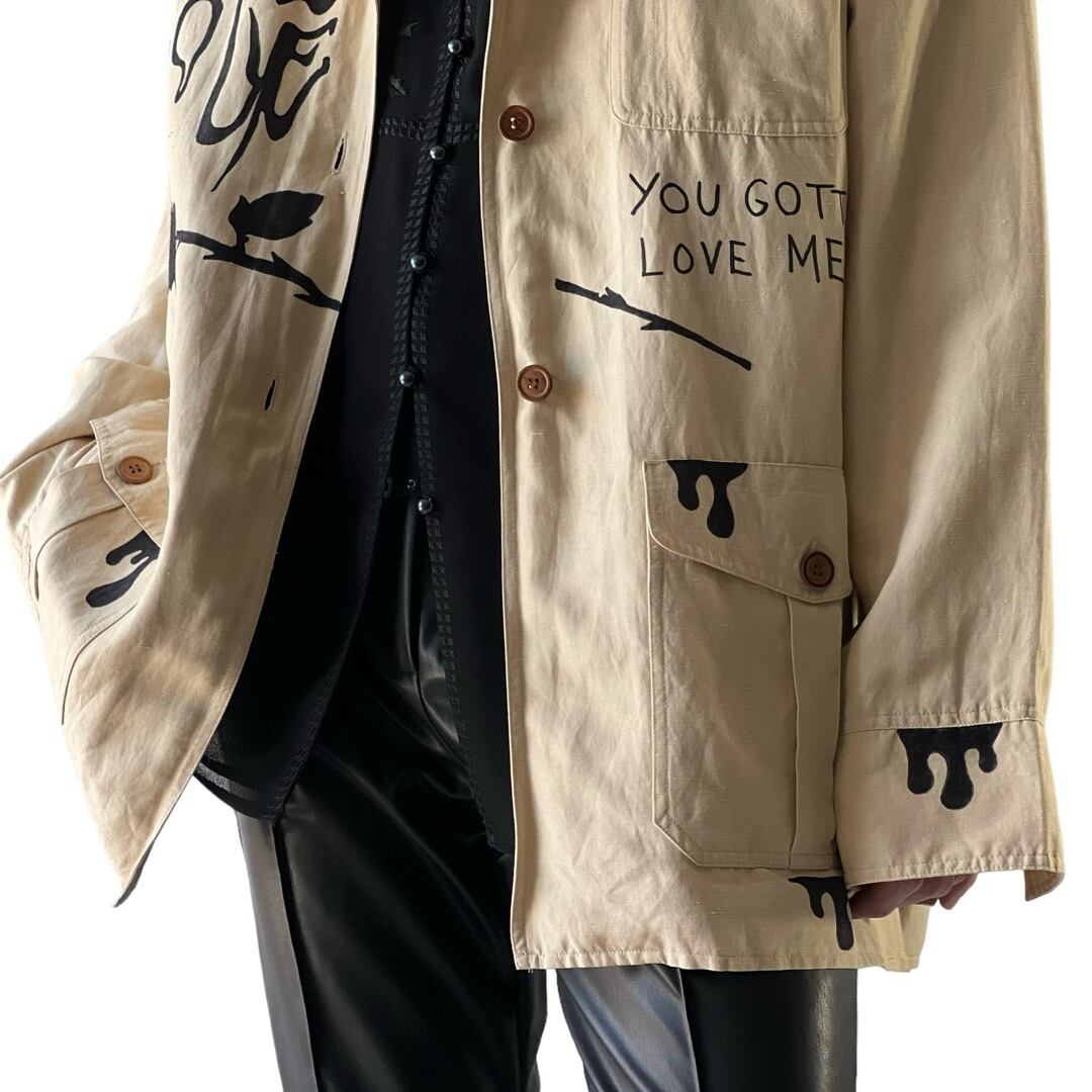 【AUGUST SILK】"Design paint pattern" Silk Linen coveralls Tipe Jacket