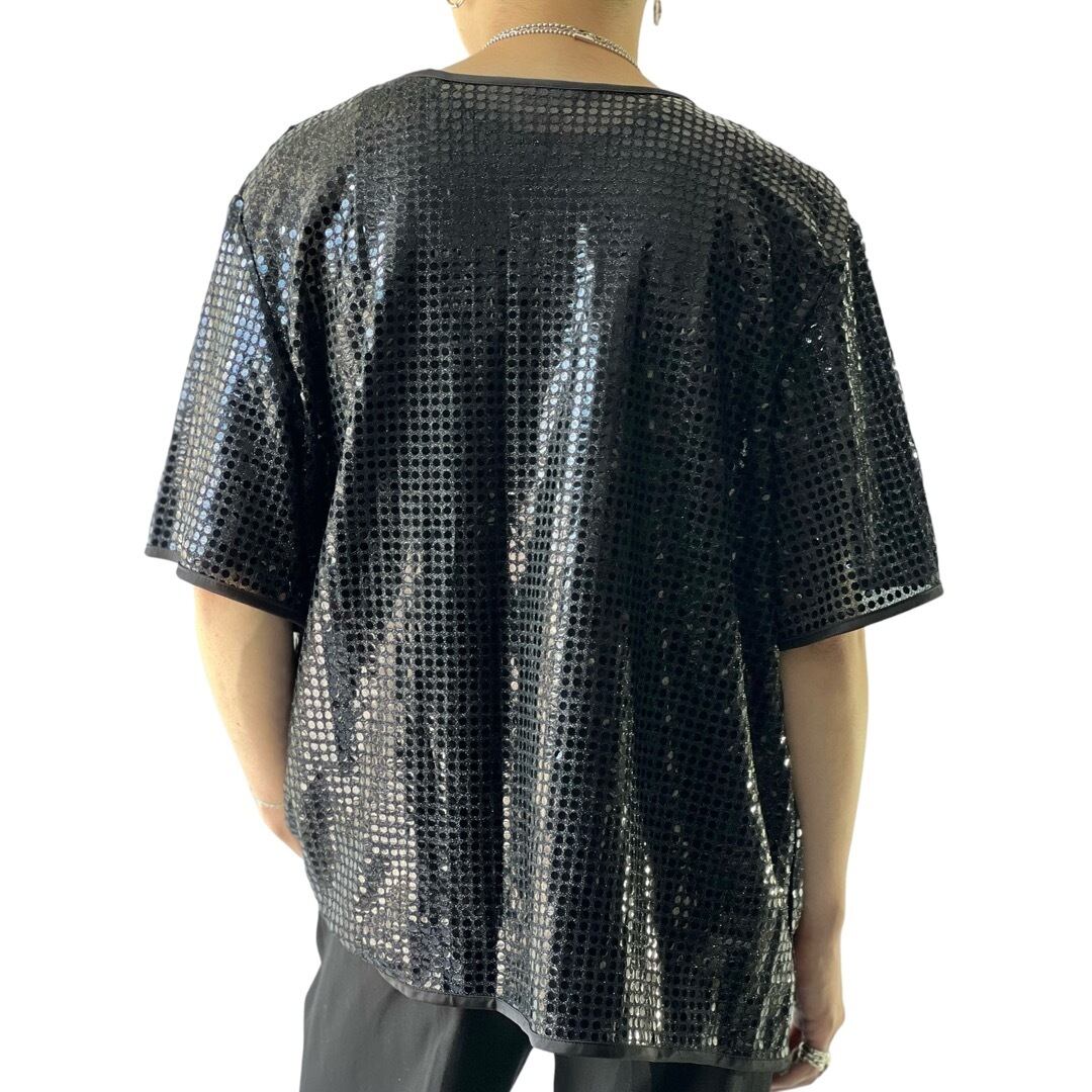 【BLAIR BOUTIQUE】Metallic Nylon party design Tee shirt -MADE IN U.S.A.-