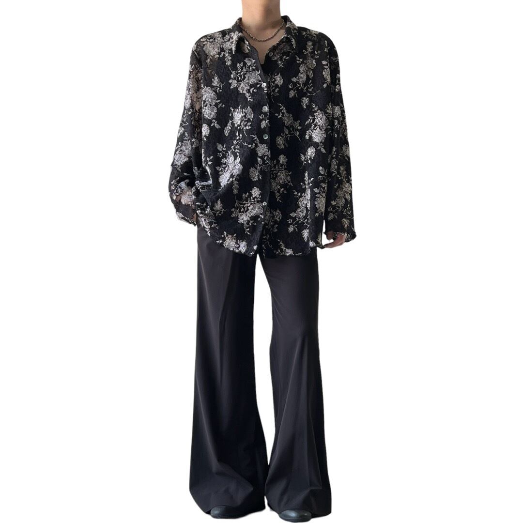 【AVENUE】Flower pattern Lace fabric Design shirt