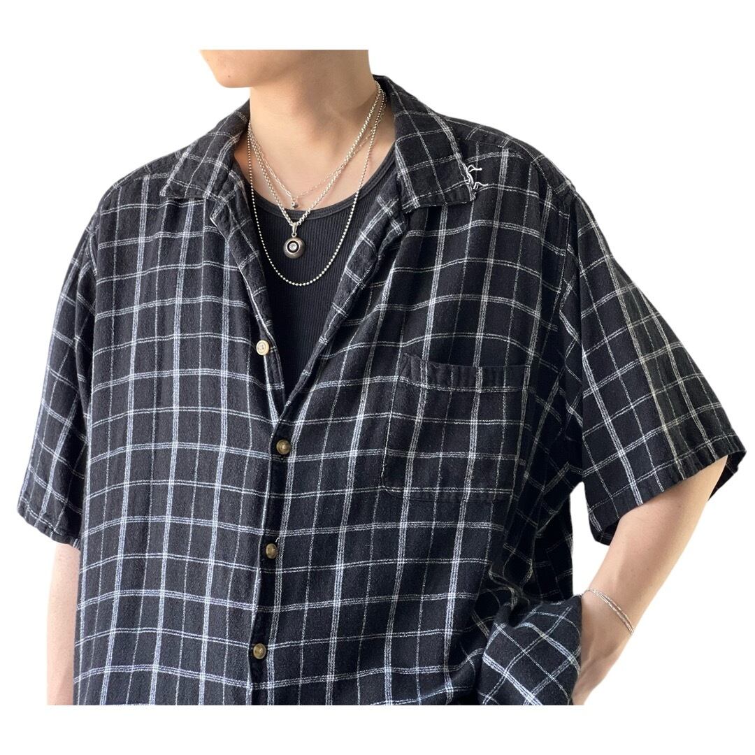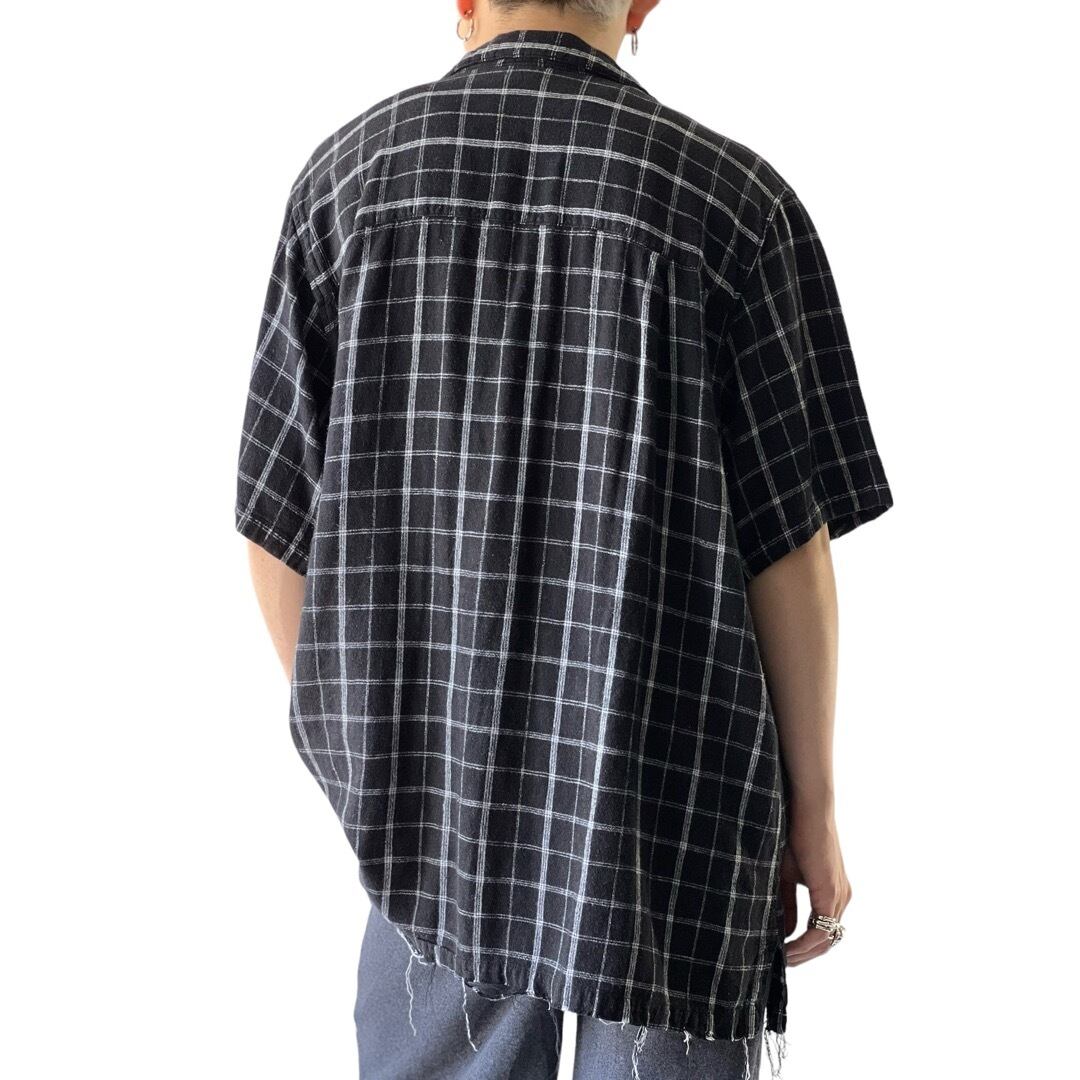 【KINGSIZE】"crush design" Linen Rayon Opencollar shirt / size:2XL BIG