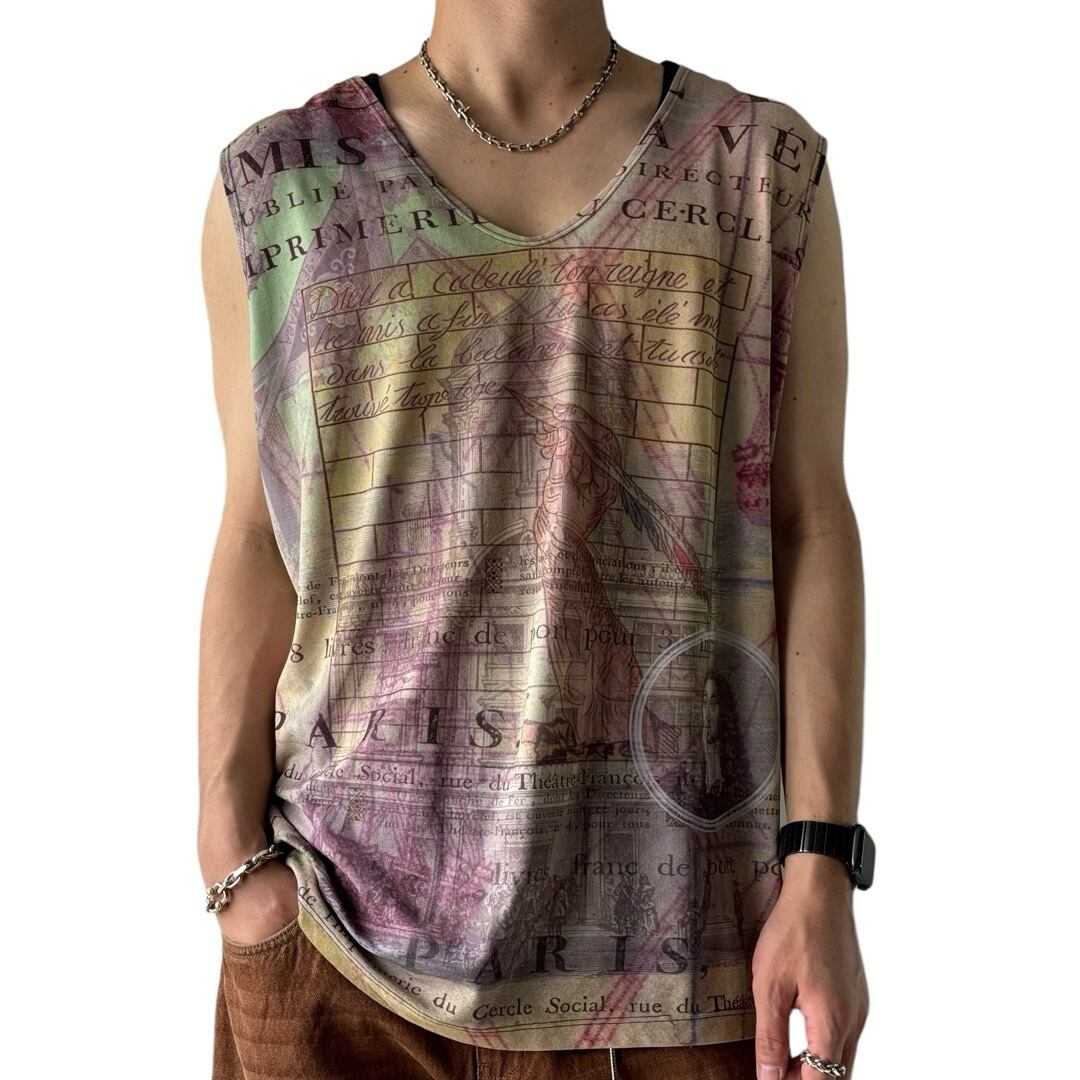♾️IVORY♾️ Euro graphic sleeveless cut sew