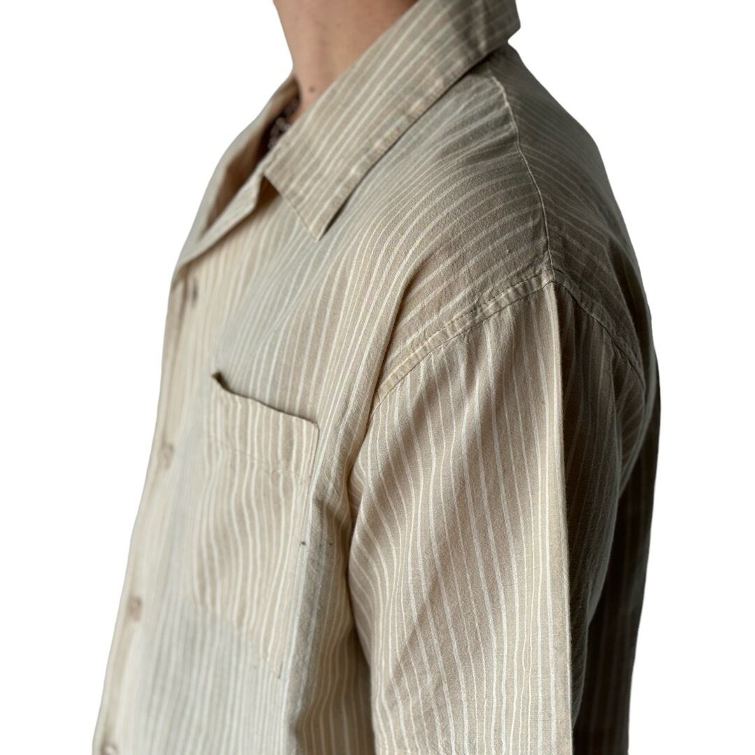 オトナベージュにストライプパターンの雰囲気の出た質感がヴィンテージライクでフロント背面にハンドペイント風の無二感あるデザインが超映え❤︎