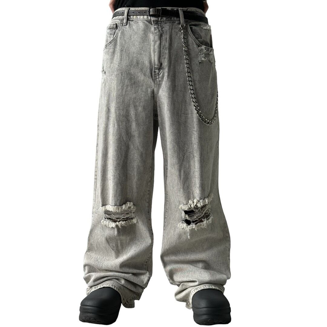 ♾So♾ design crushed high faded glay wide denim pants Dead Stock