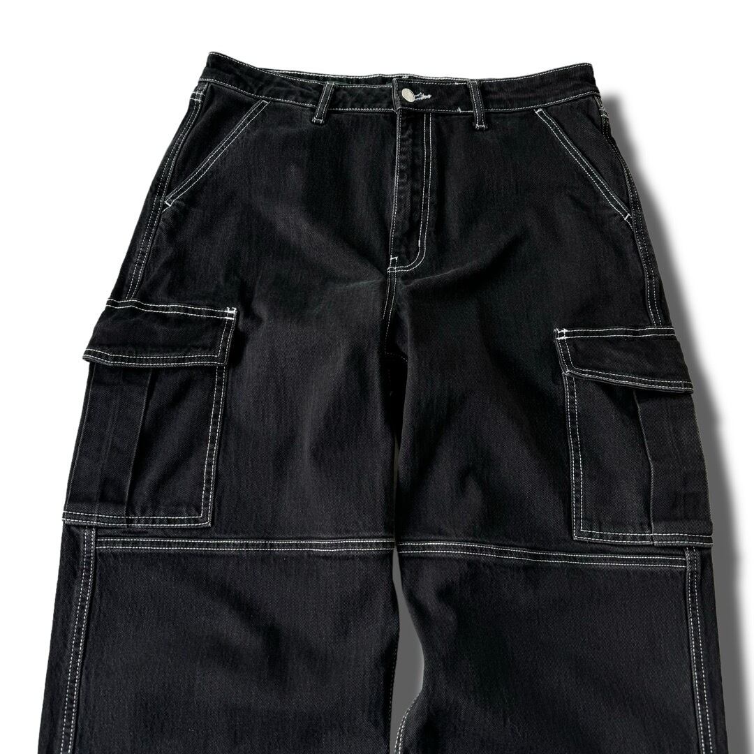 stitch cargo detail design wide denim pants