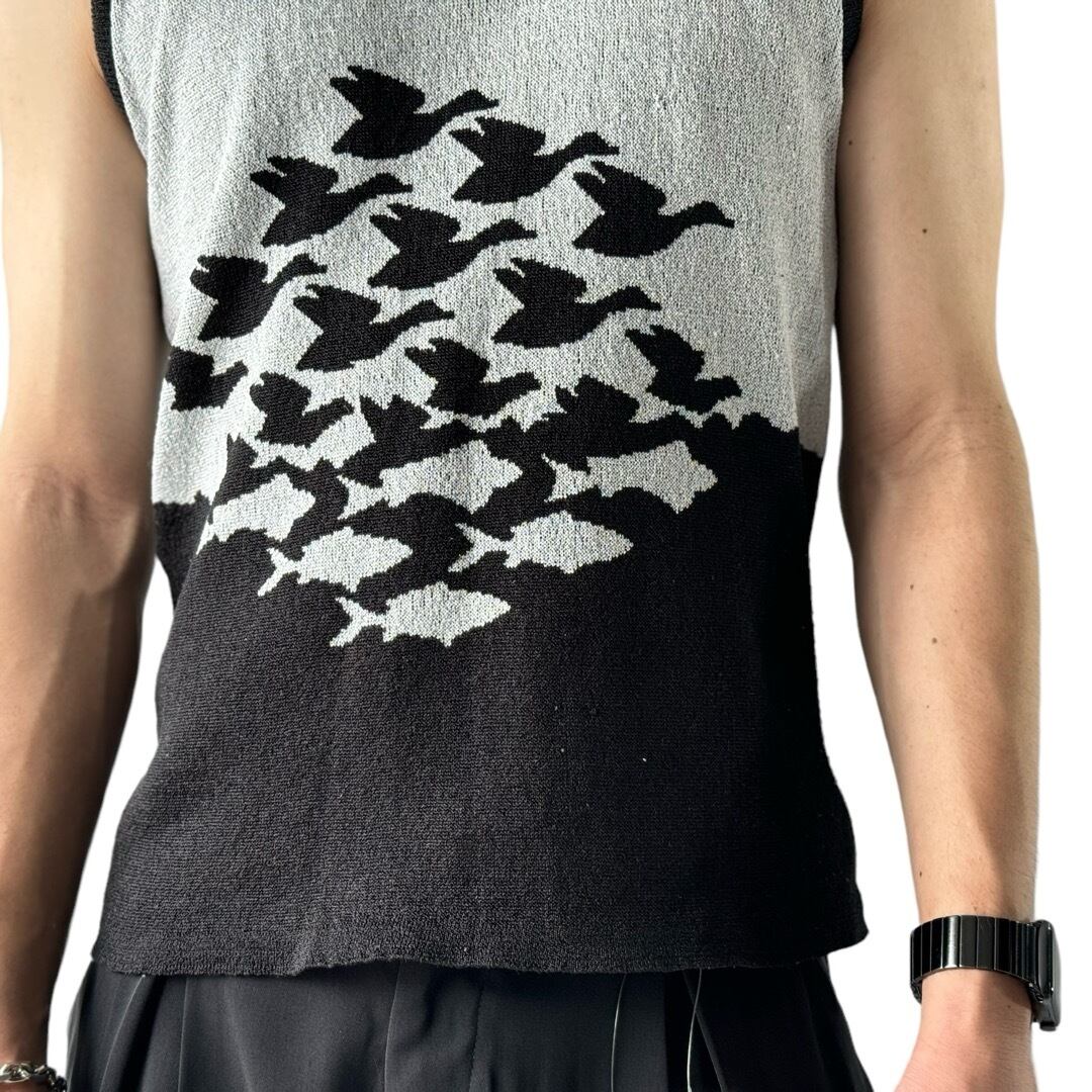 ツートンで空を飛ぶ鳥と海を泳ぐ魚を表現したデザインスリーブレスアイテム!!