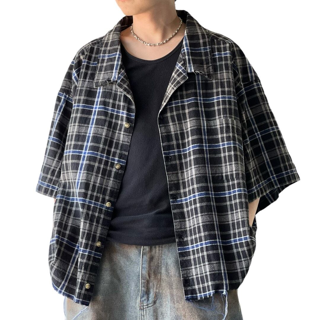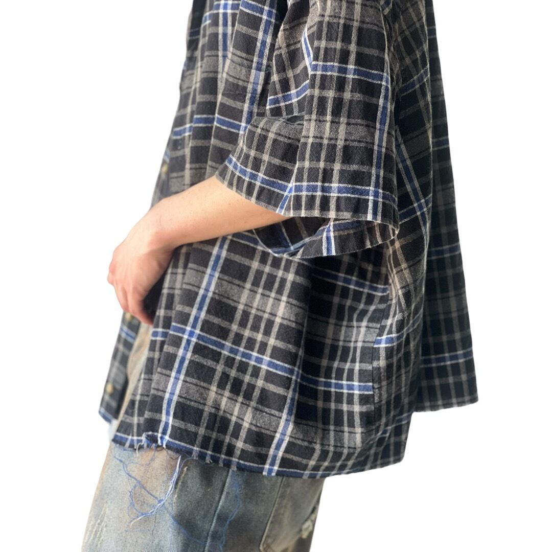【KINGSIZE】 Ramie Cotton S/S Summer check shirt / size:6XL BIG