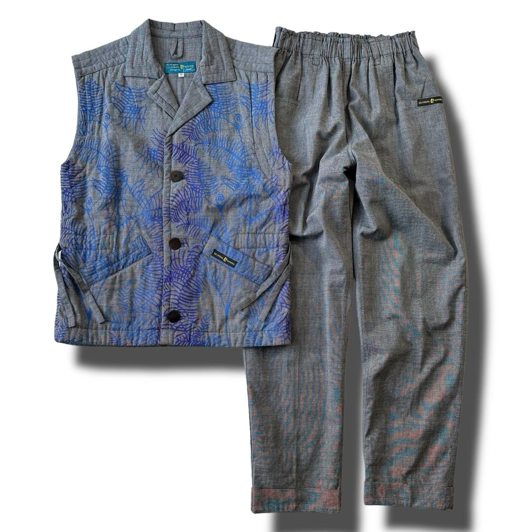 枝のような独特なパターンをデザインしたスリーブレストップスとベルトループ付きイージーパンツのセットアップ✨