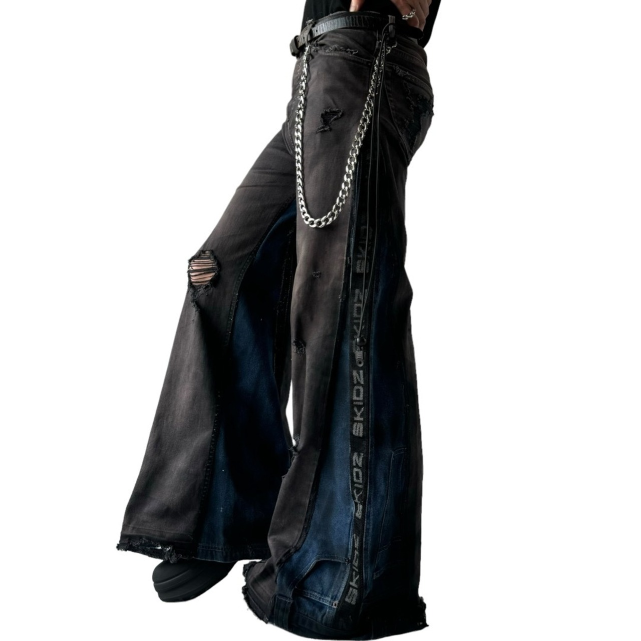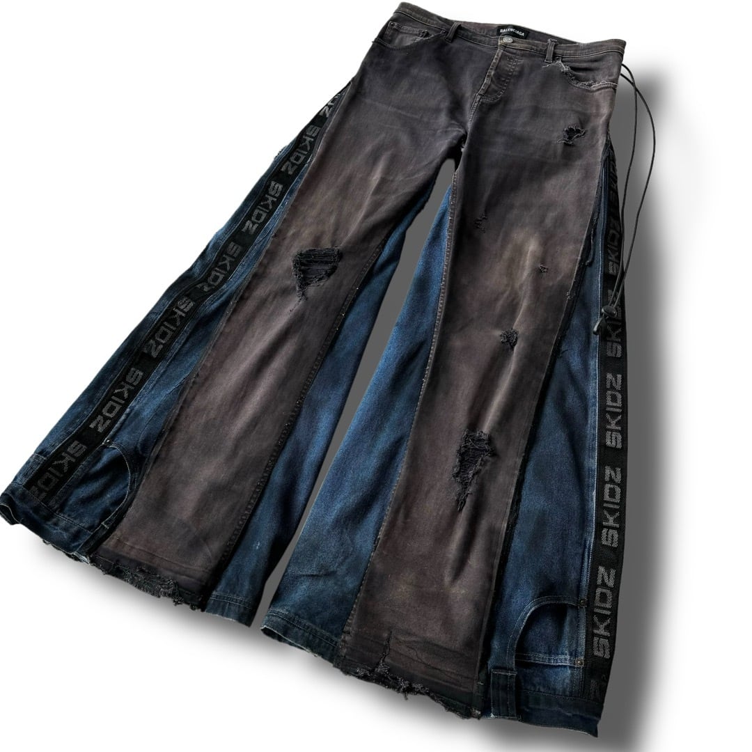 ♾️REMAKE BALENCIAGA♾️ design dirty custom wide buggy flare denim pants MADE IN ITALY