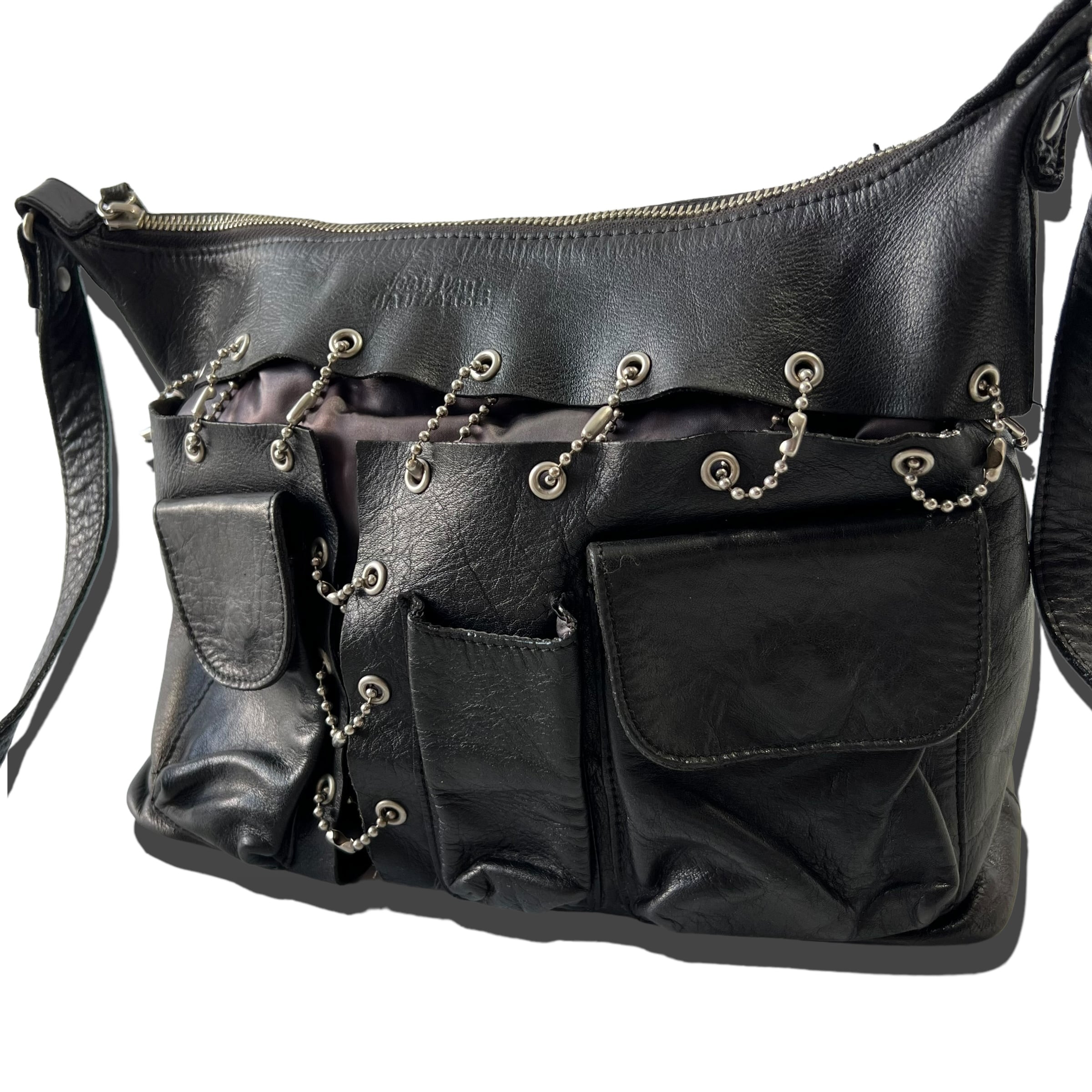 Special… 【Jean Paul GAULTIER】 "Archive Collection Item" ballchain patchwork design Leather Shoulder Bag